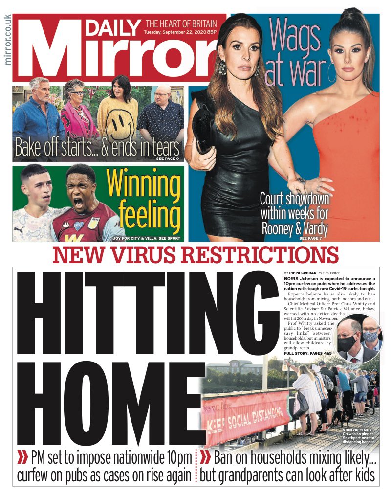 Along with announcing new coronavirus restrictions including a 10pm curfew on pubs, experts believe Boris Johnson will likely ban households from mixing, both indoors and out, the Daily Mirror writes.