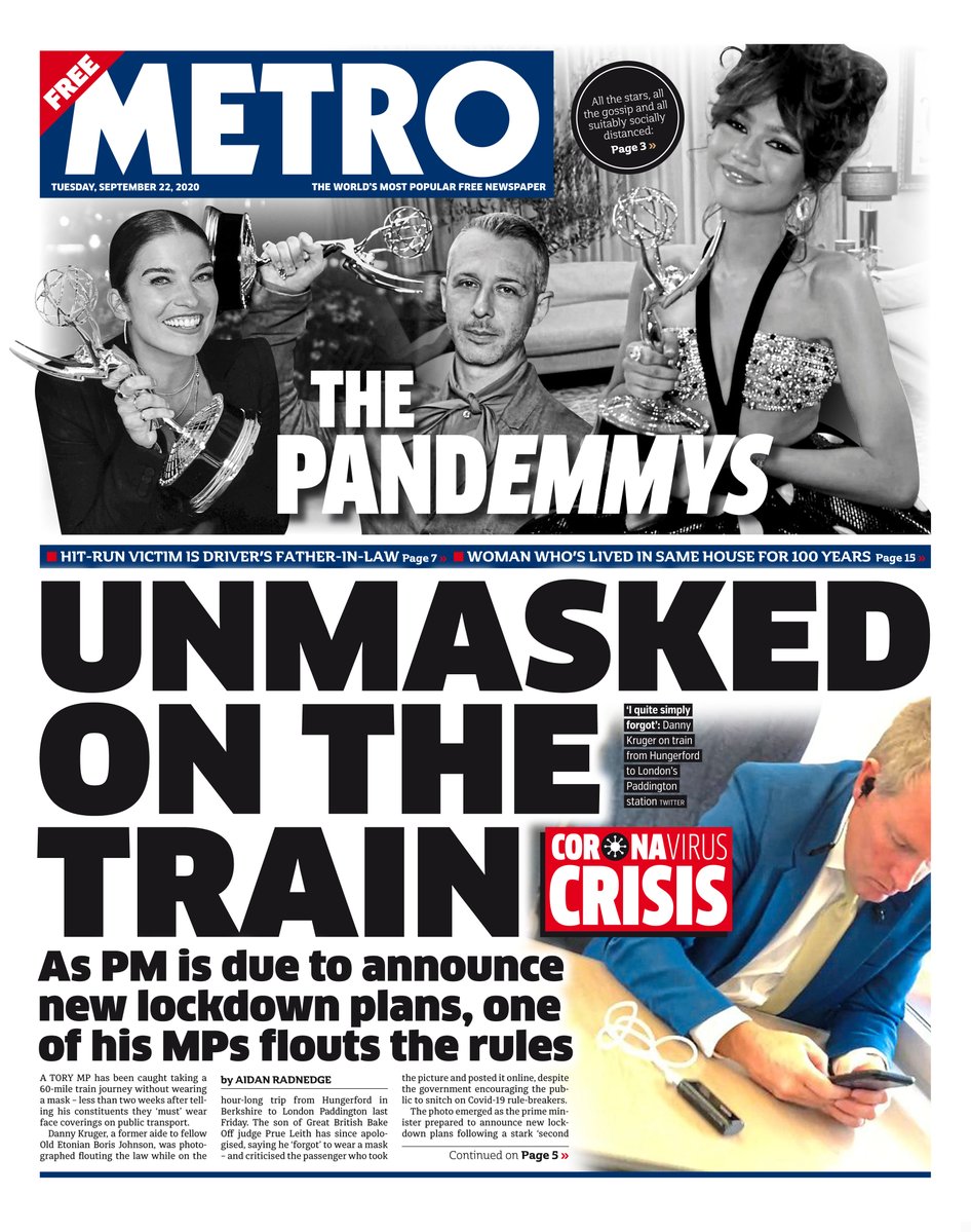 Metro reports that a Conservative MP has been caught taking a 60-mile train journey without wearing a mask – less than two weeks after telling his constituents they “must” wear face coverings on public transport.
