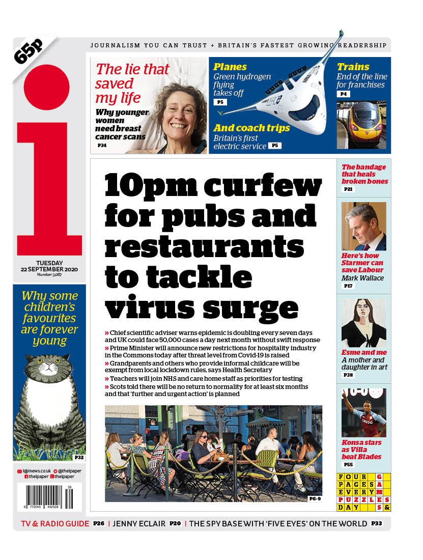 The i reports that the epidemic is doubling every seven days and the UK could face 50,000 cases a day next month without a swift response.