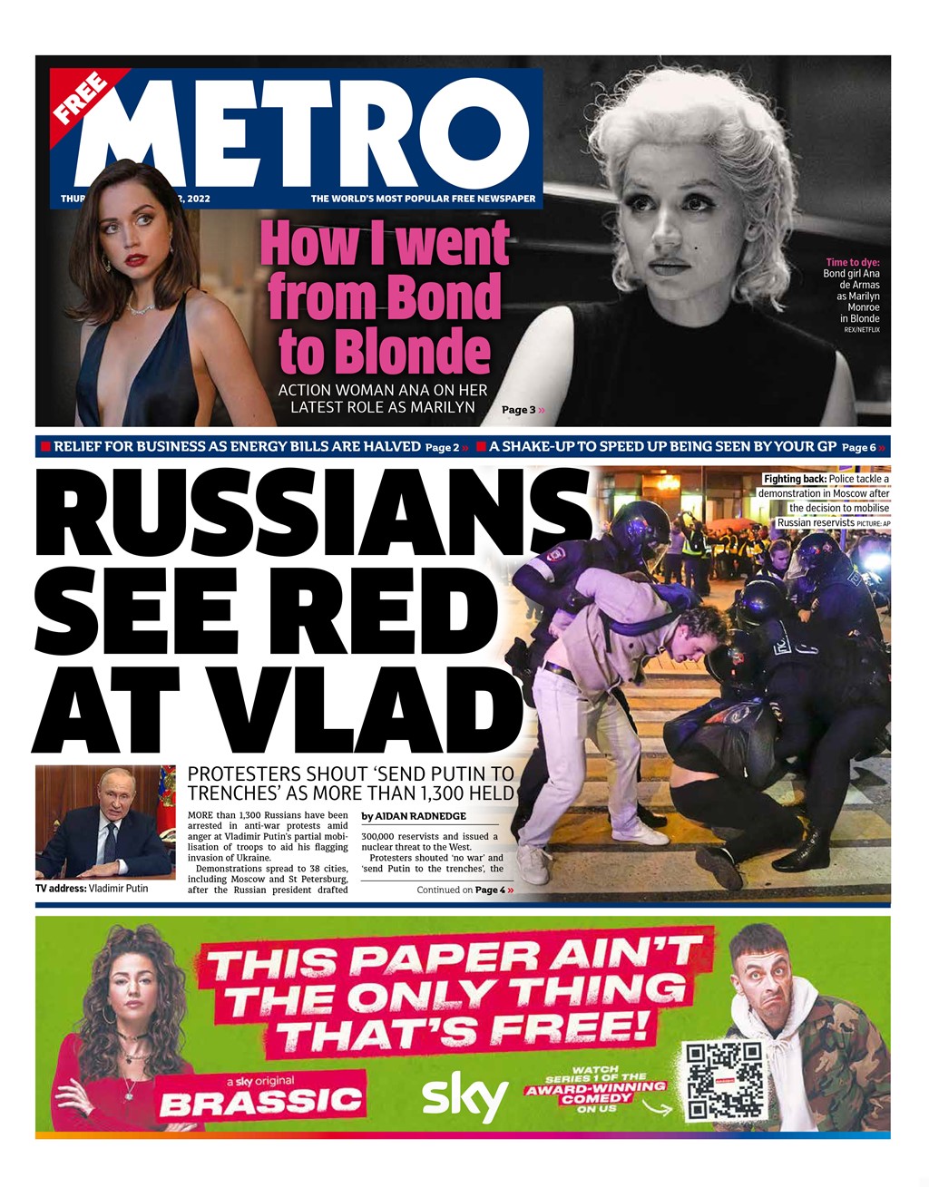 Following Vladimir Putin’s announcement that reservists would fight in Ukraine, more than 1,300 Russians have been arrested.