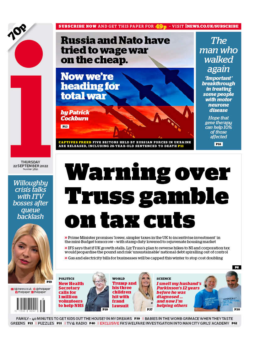i leads with a warning about Liz Truss’s tax cuts gamble.