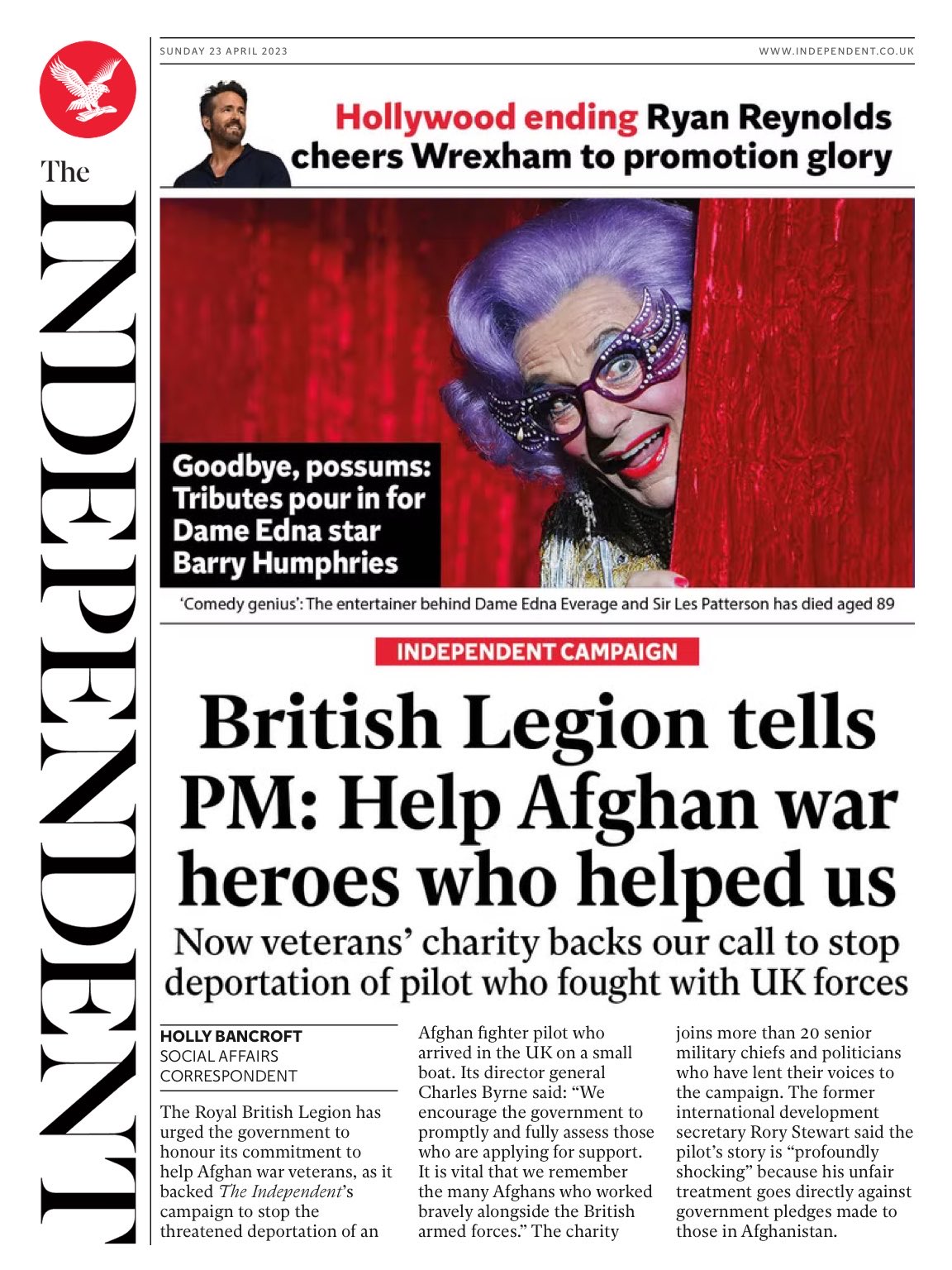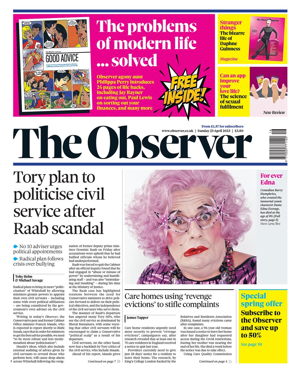 Daily Star Sunday features the passing of comedy legend Barry Humphries, globally known as Dame Edna Everage.