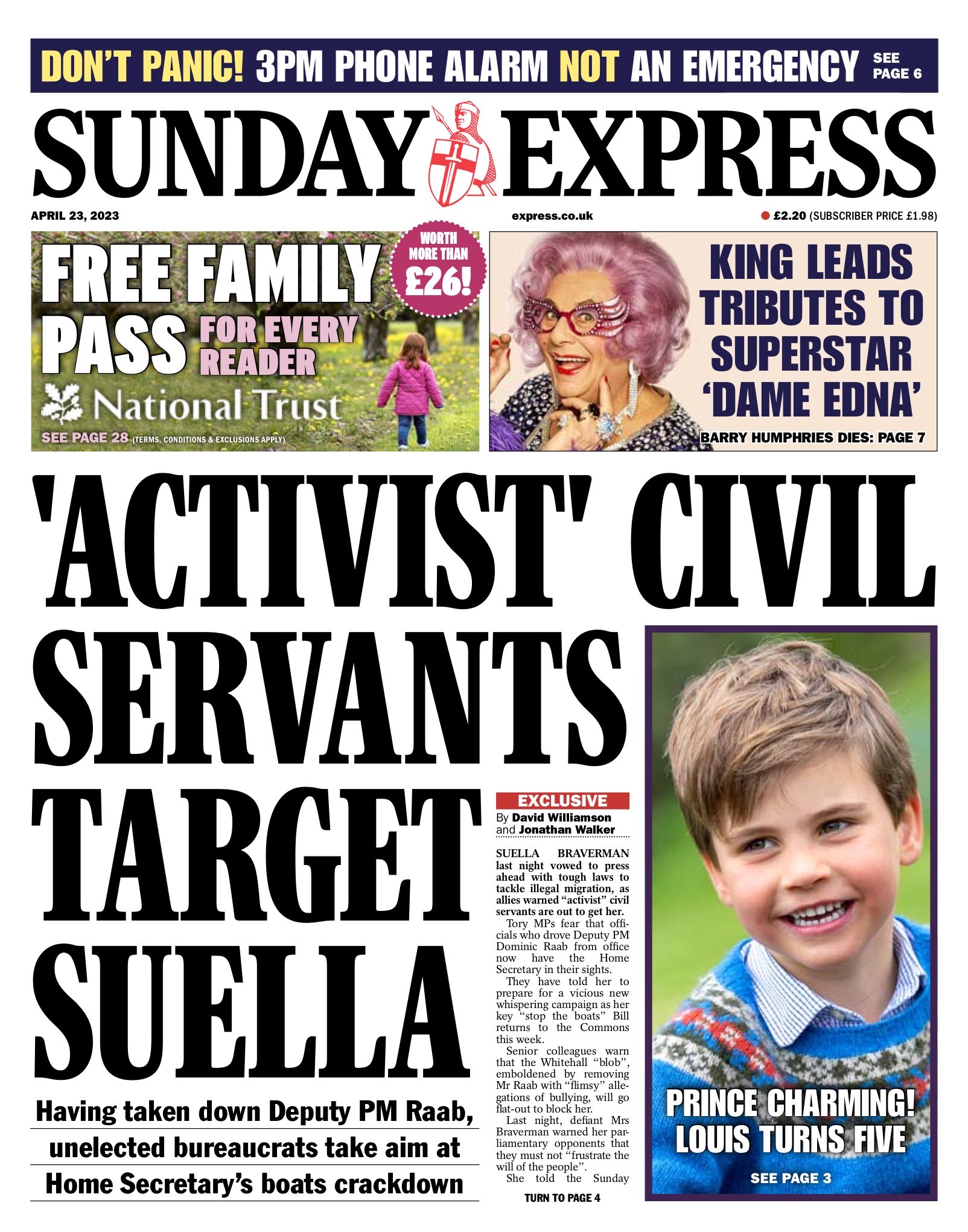 Civil service activists allegedly plot to oust Suella Braverman from Home Office after Raab’s resignation, according to Sunday Express.