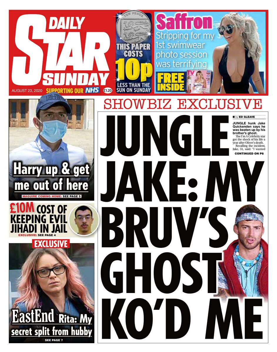 The Sunday Star leads on comments by a contestant on I’m A Celebrity.
