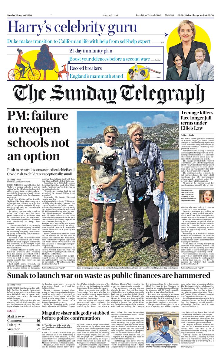 The Sunday Telegraph reports that Boris Johnson has said not opening schools next month “is not an option”.