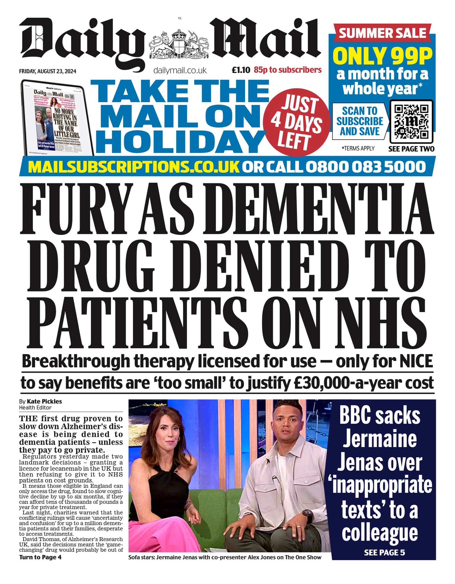 The Independent reports that regulators have approved the Alzheimer’s drug lecanemab, but it is deemed too costly for NHS patients.