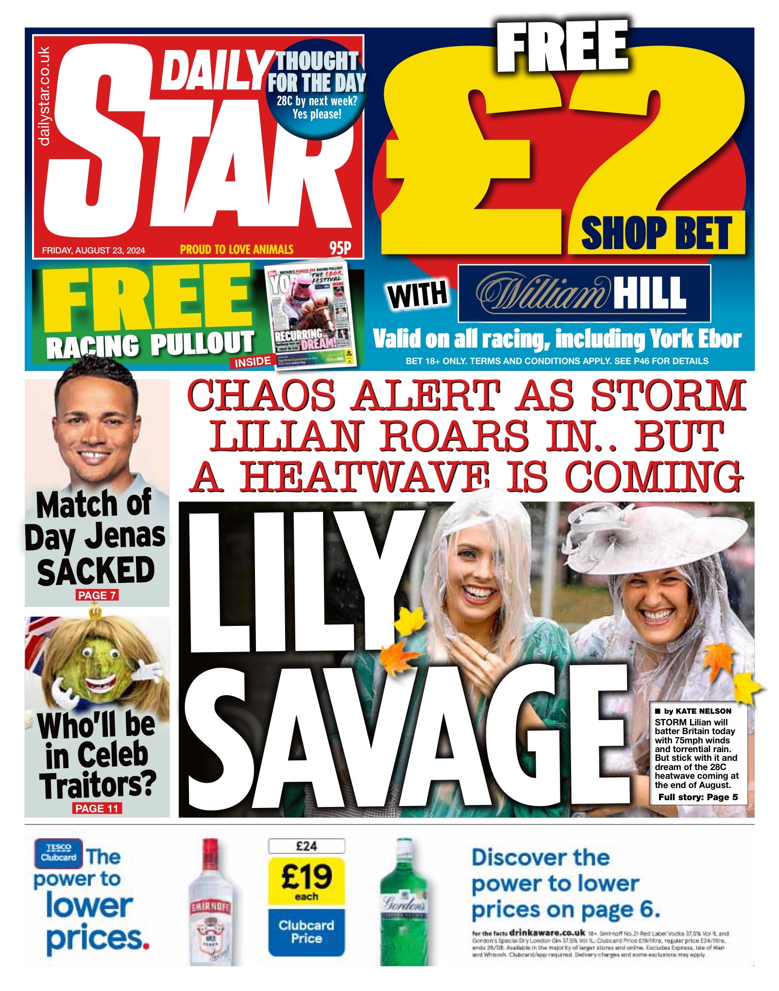 Storm Lilian is set to hit Britain with 75mph winds and torrential rain, but a heatwave is expected to follow by the end of August.