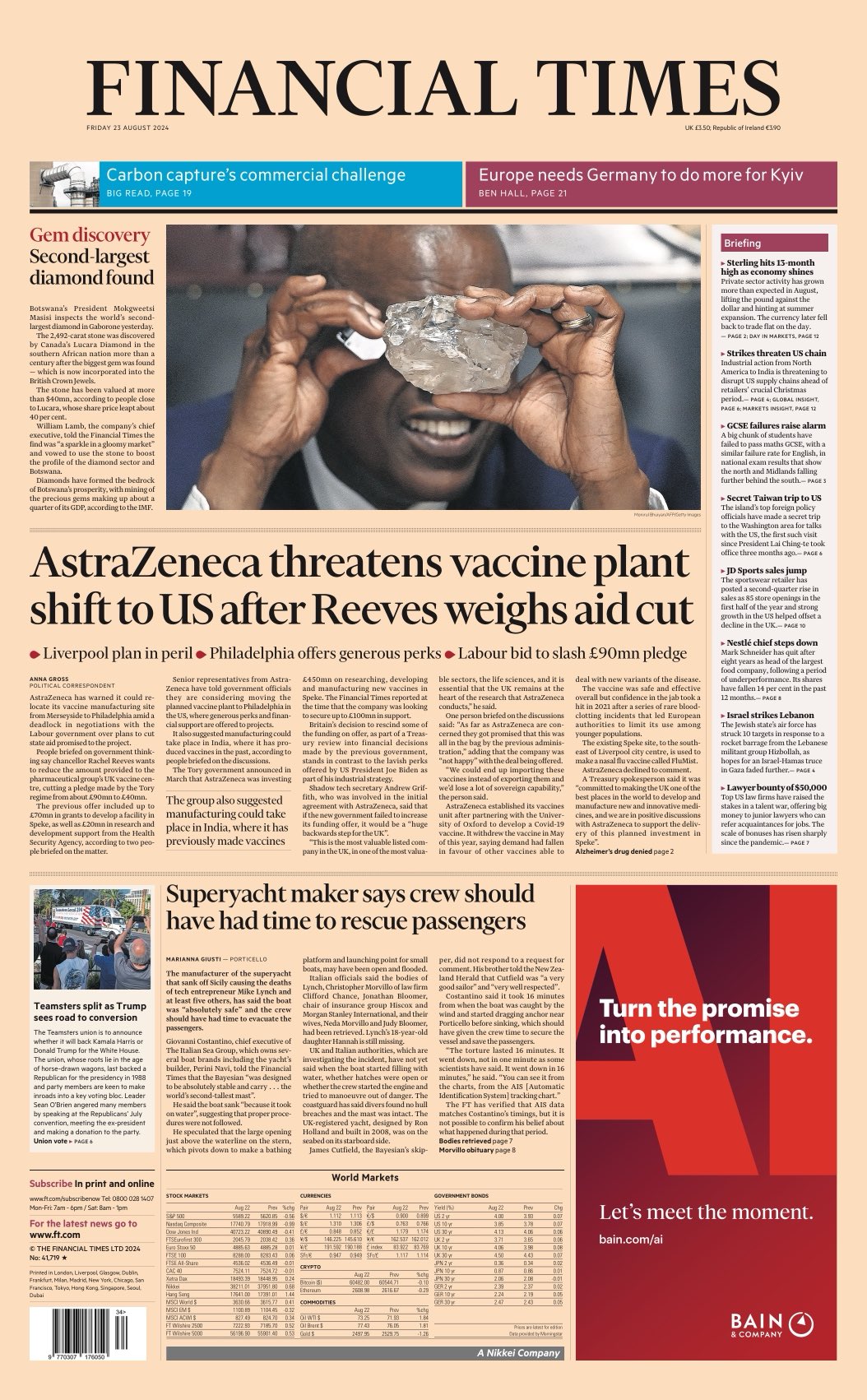 AstraZeneca has warned it could move its vaccine plant to the US due to concerns over the UK government potentially cutting aid that supports drug manufacturing and research, with Philadelphia offering incentives to attract the company.