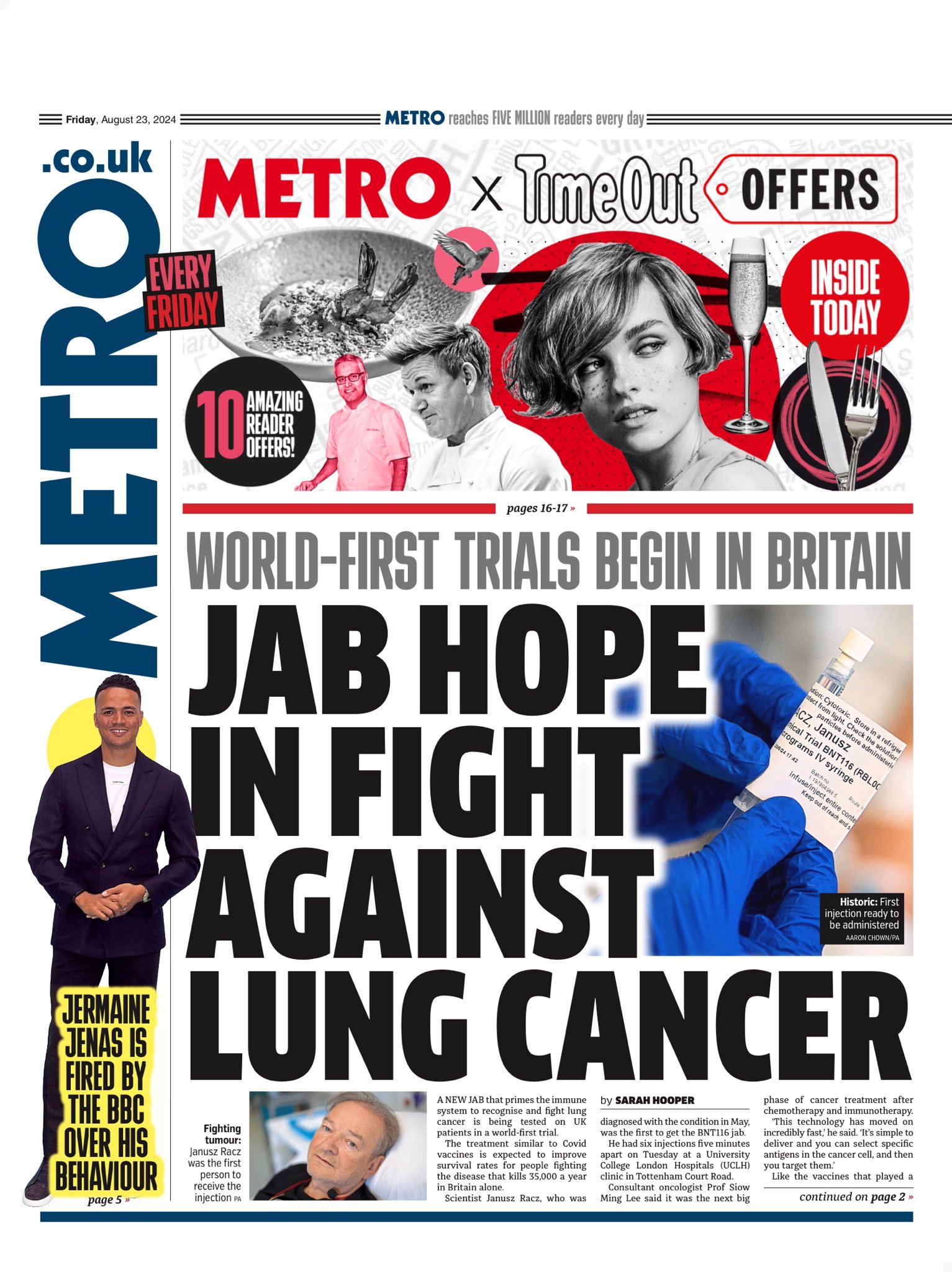 A new jab that primes the immune system to recognise and fight lung cancer is being tested on UK patients in a world-first clinical trial.