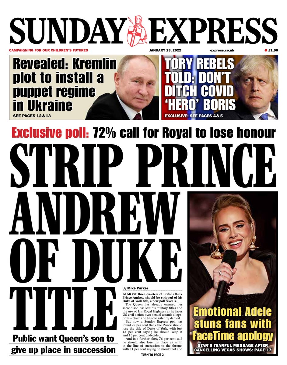 A Sunday Express poll has found that 72% of respondents want Prince Andrew to be stripped of his Duke title.
