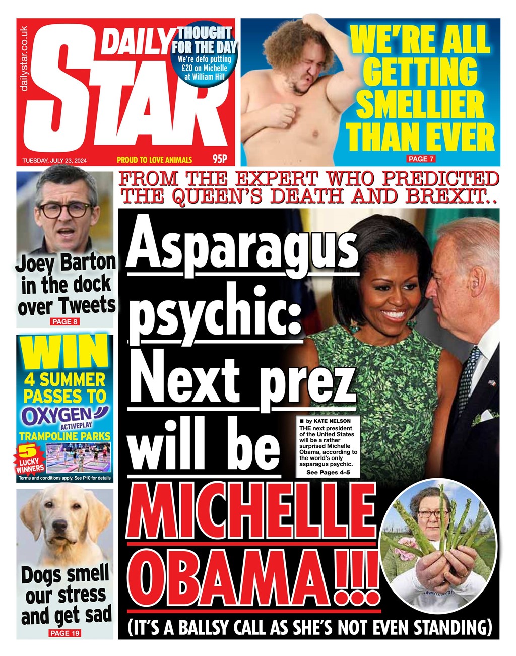 According to the Daily Star, an asparagus psychic predicts Michelle Obama will be the next U.