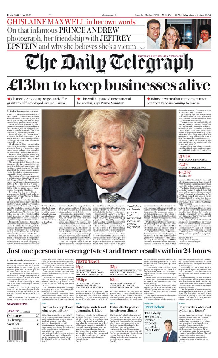 “Together we will protect Britain” – That headline on the Daily Express refers to the PM and chancellor pledging to throw billions of pounds more on the UK’s coronavirus rescue package, adding its total could top £200bn.Read more on this story here.