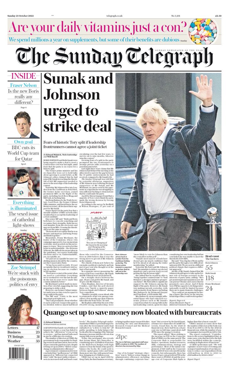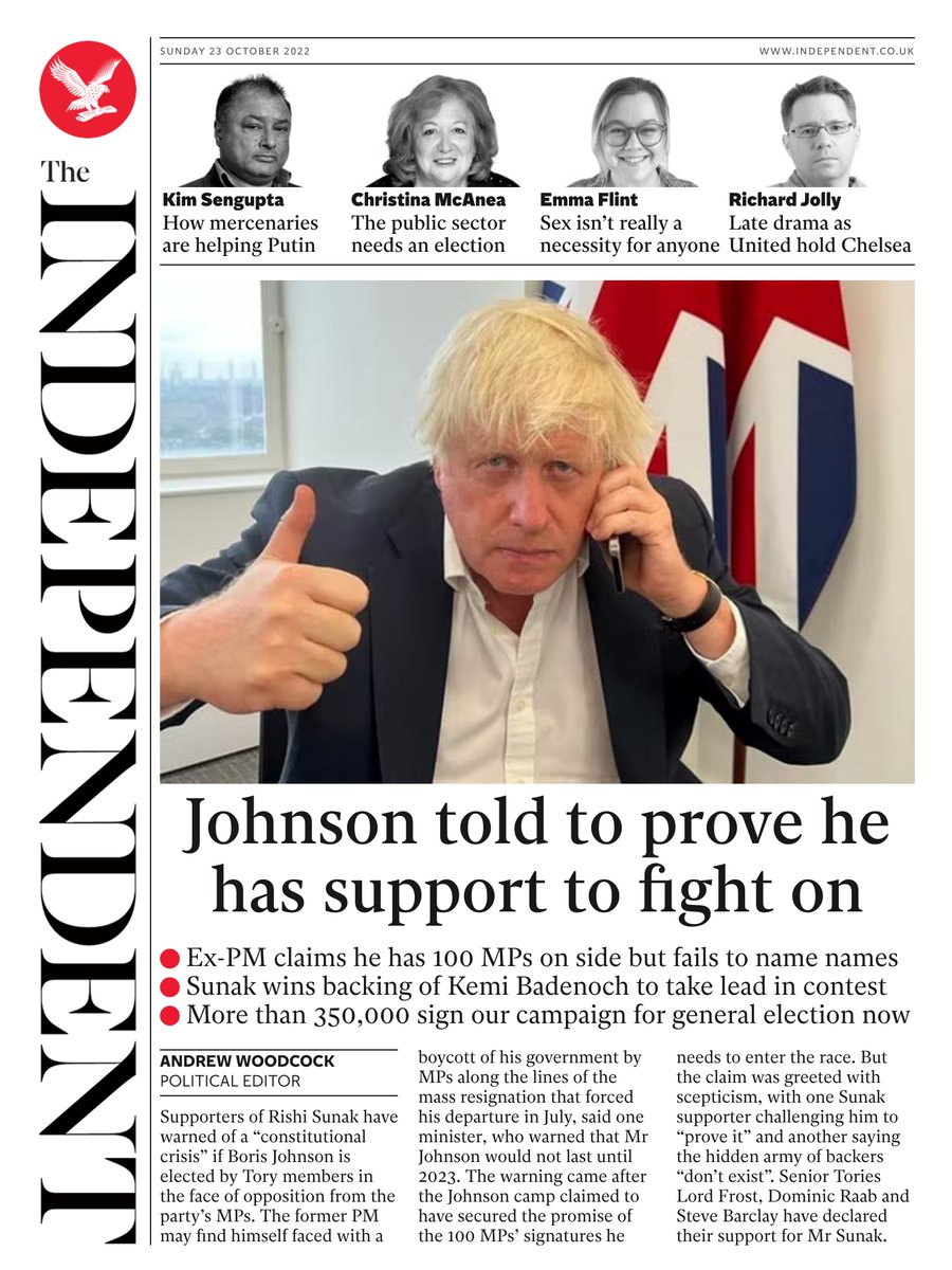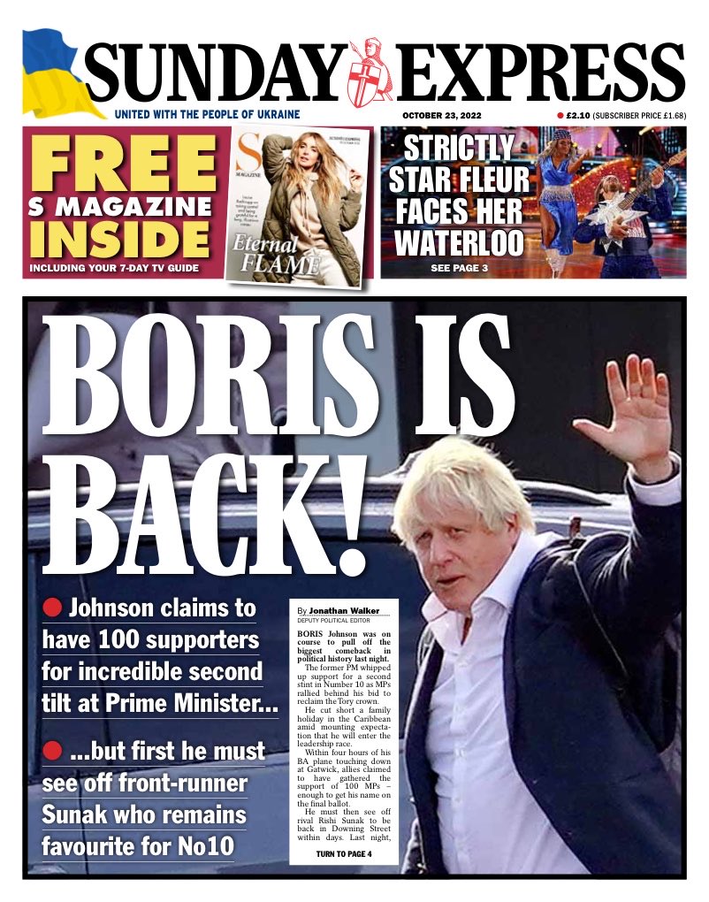 Boris Johnson is back, according to the Daily Express. Mr Johnson that he has 100 supporters in the Tory leadership race.