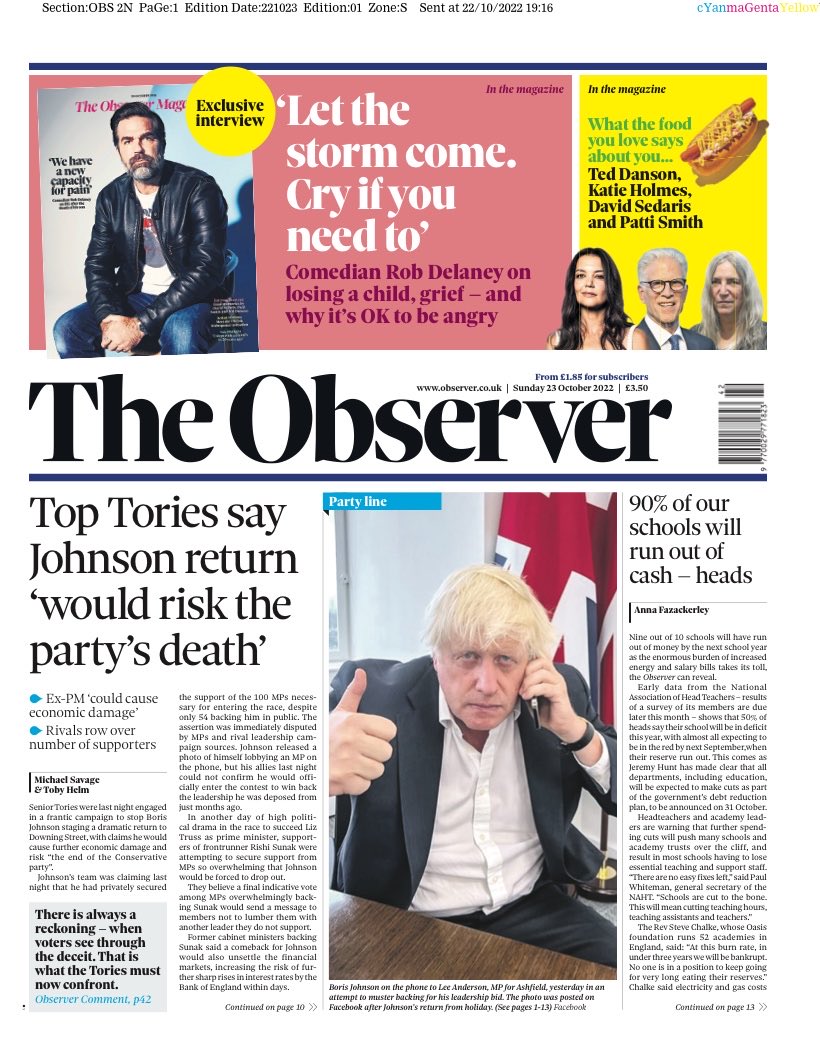 According to The Observer, top Tories fear Johnson’s return would risk their party’s death, as the former prime minister is expected to run for leadership.