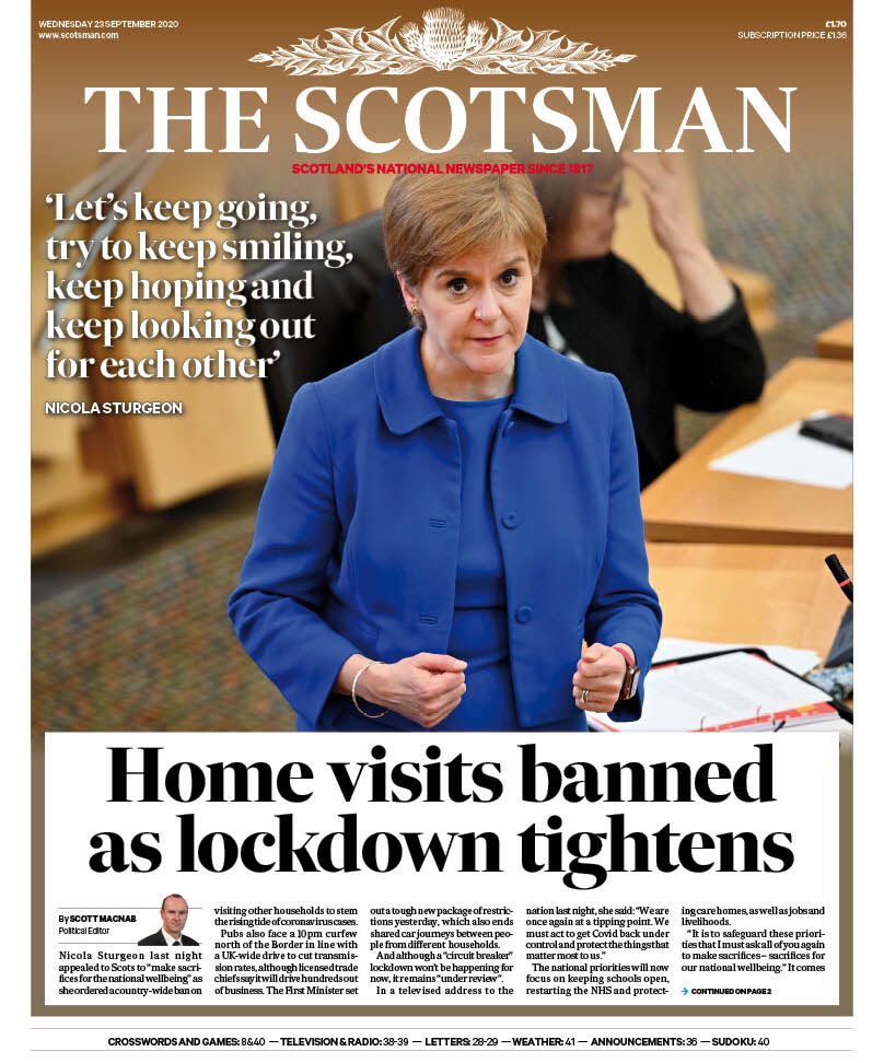 Daily Express Front Page 23rd of September 2020