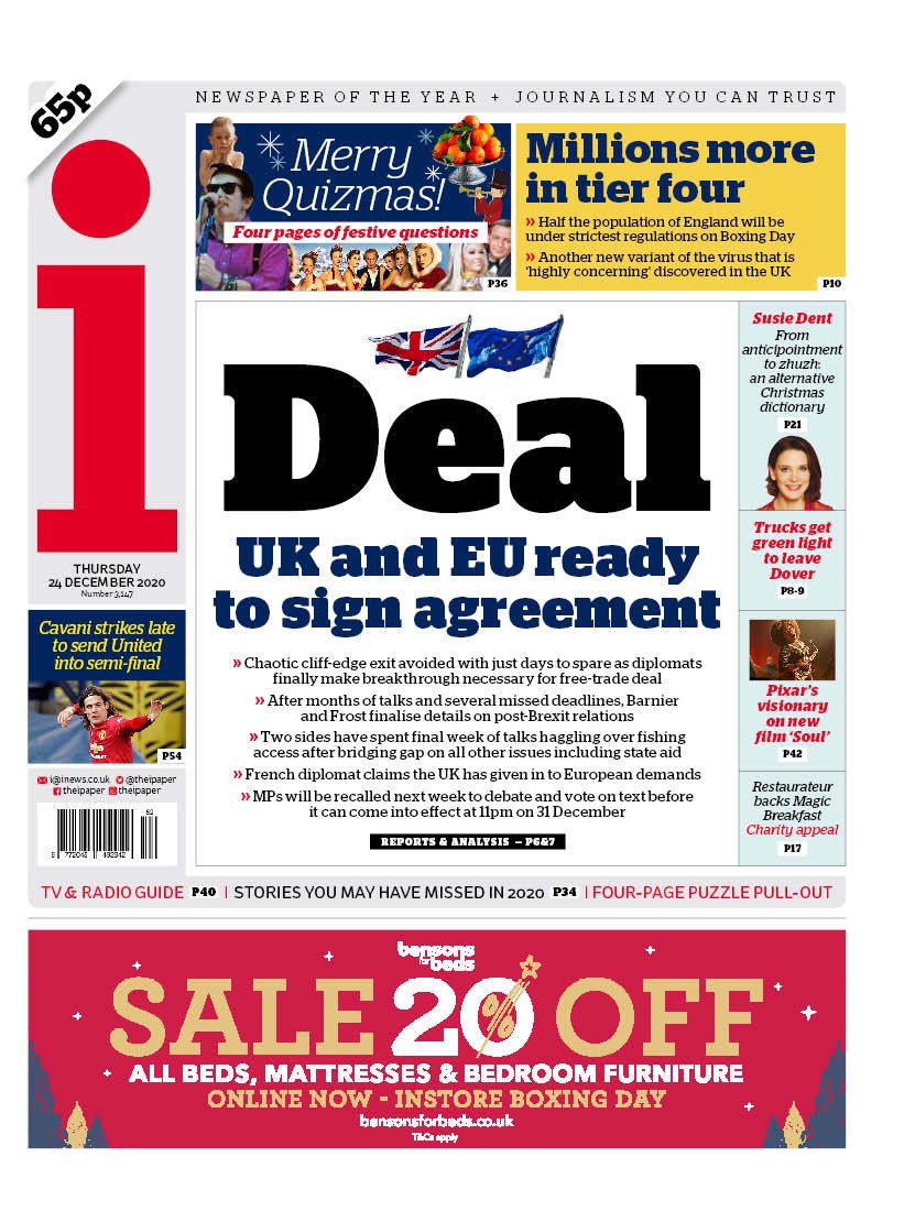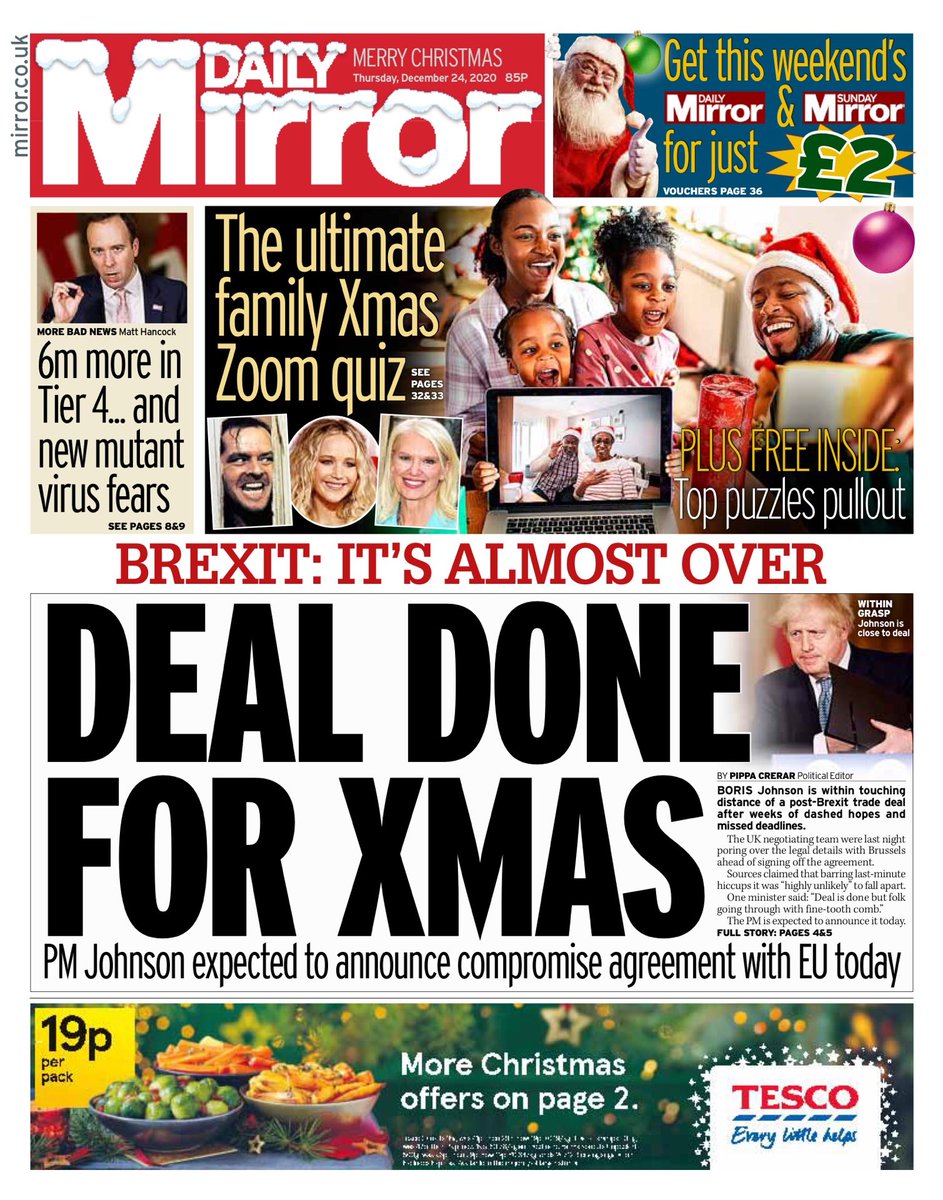 The Daily Mirror has claimed Brexit is “almost over” as Boris Johnson is expected to agree a deal with the EU on Christmas Eve.
