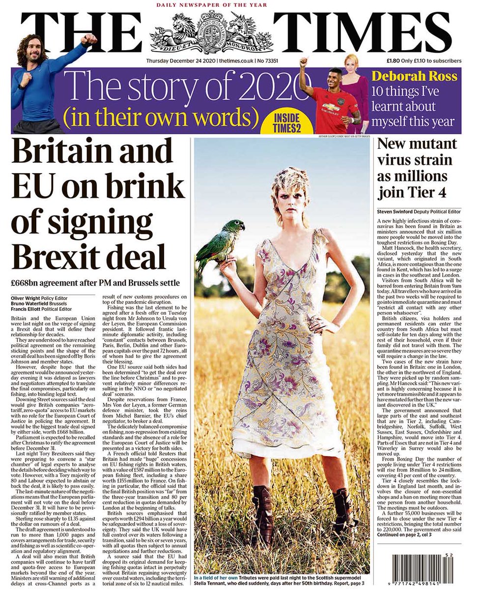Britain and the EU were “on the brink” of signing a Brexit deal that will define their relationship for decades, The Times reports.