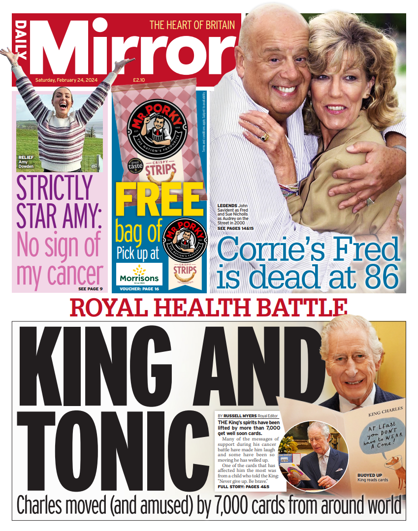 The Daily Mirror reports that over 7,000 get well soon cards have lifted the King’s spirits following his cancer diagnosis.