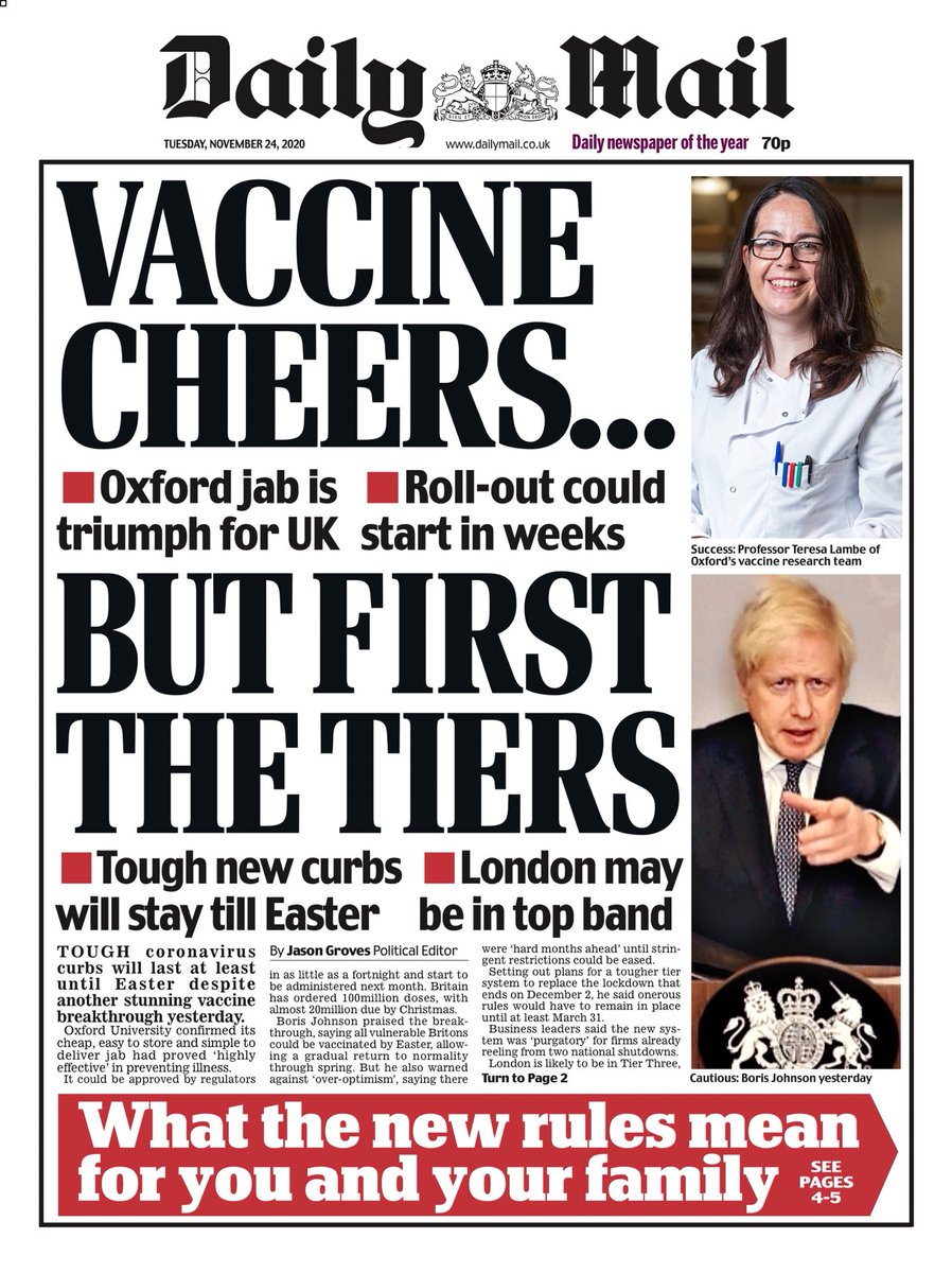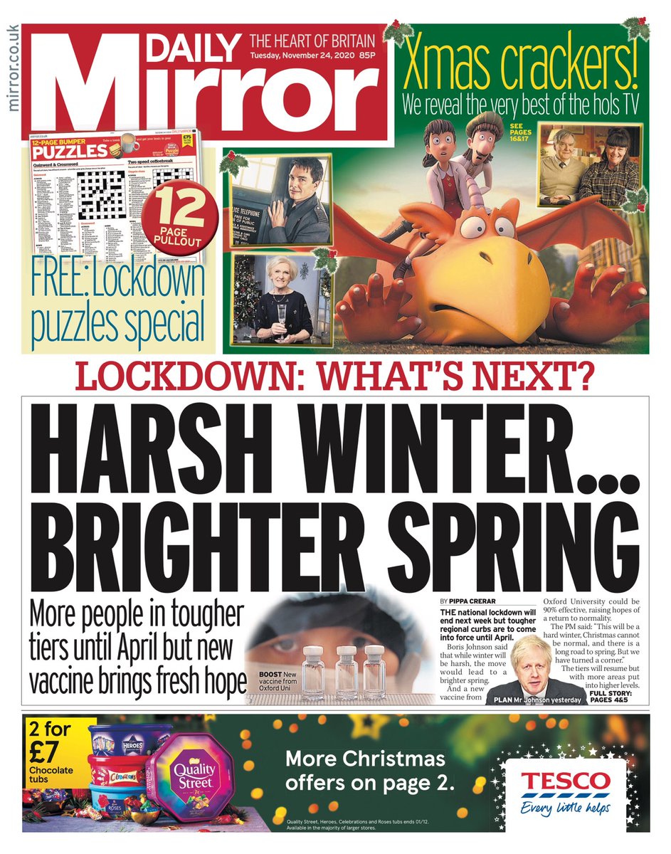 It will be a harsh winter this year as lockdown is replaced with tighter tiers – but a potential vaccine could bring hope to the country by spring, the Daily Mirror reports.