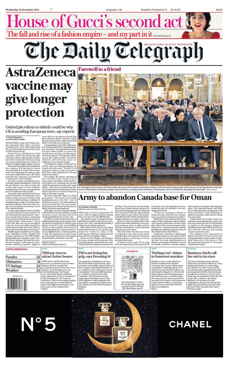 The Daily Telegraph reports the AstraZeneca vaccine may offer longer-lasting immunity than other jabs.