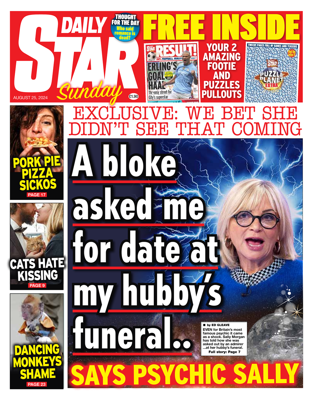 Psychic Sally Morgan is featured in the Daily Star Sunday after an admirer reportedly asked her out at her husband’s funeral.