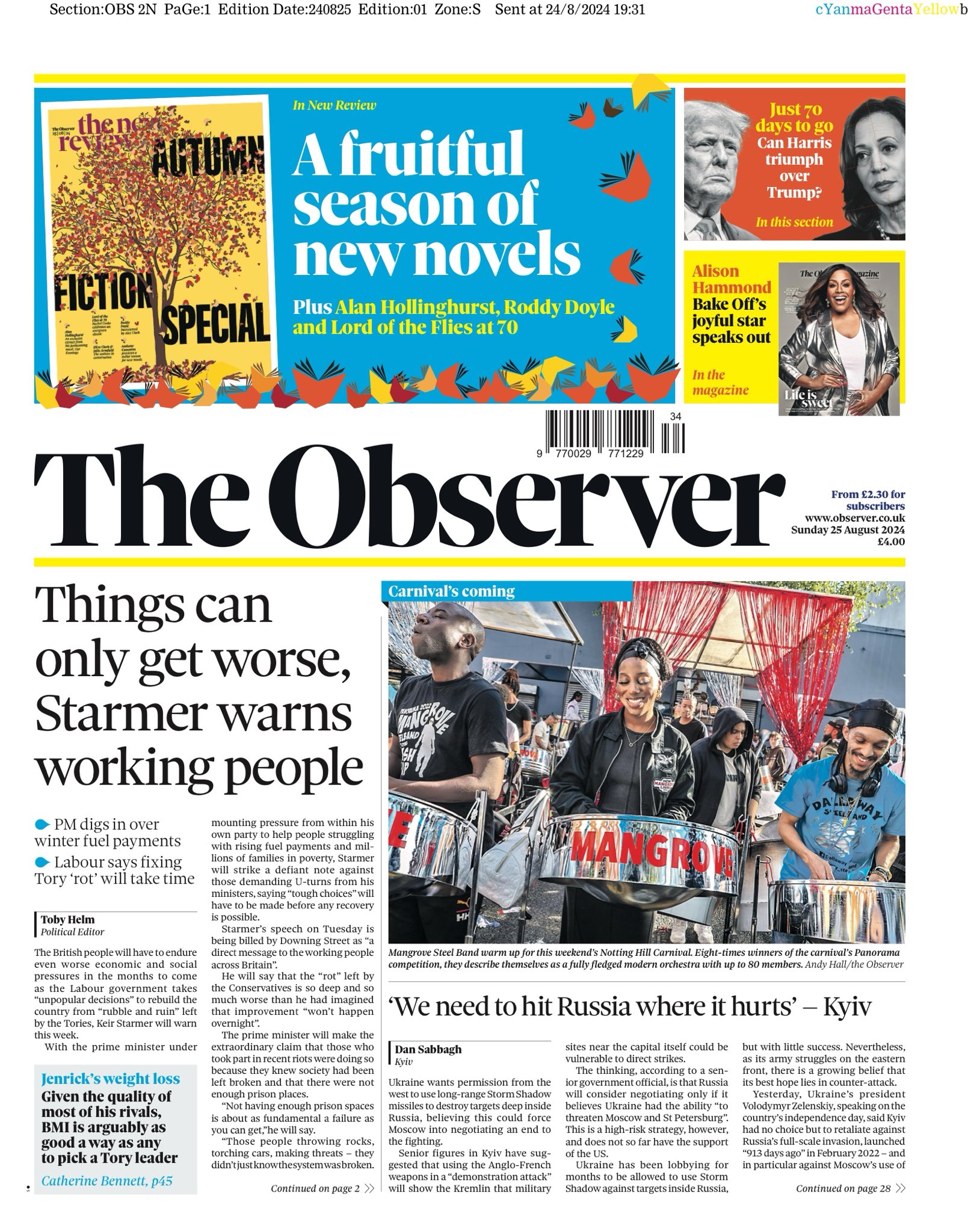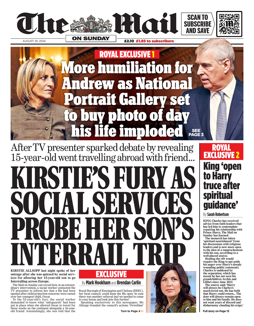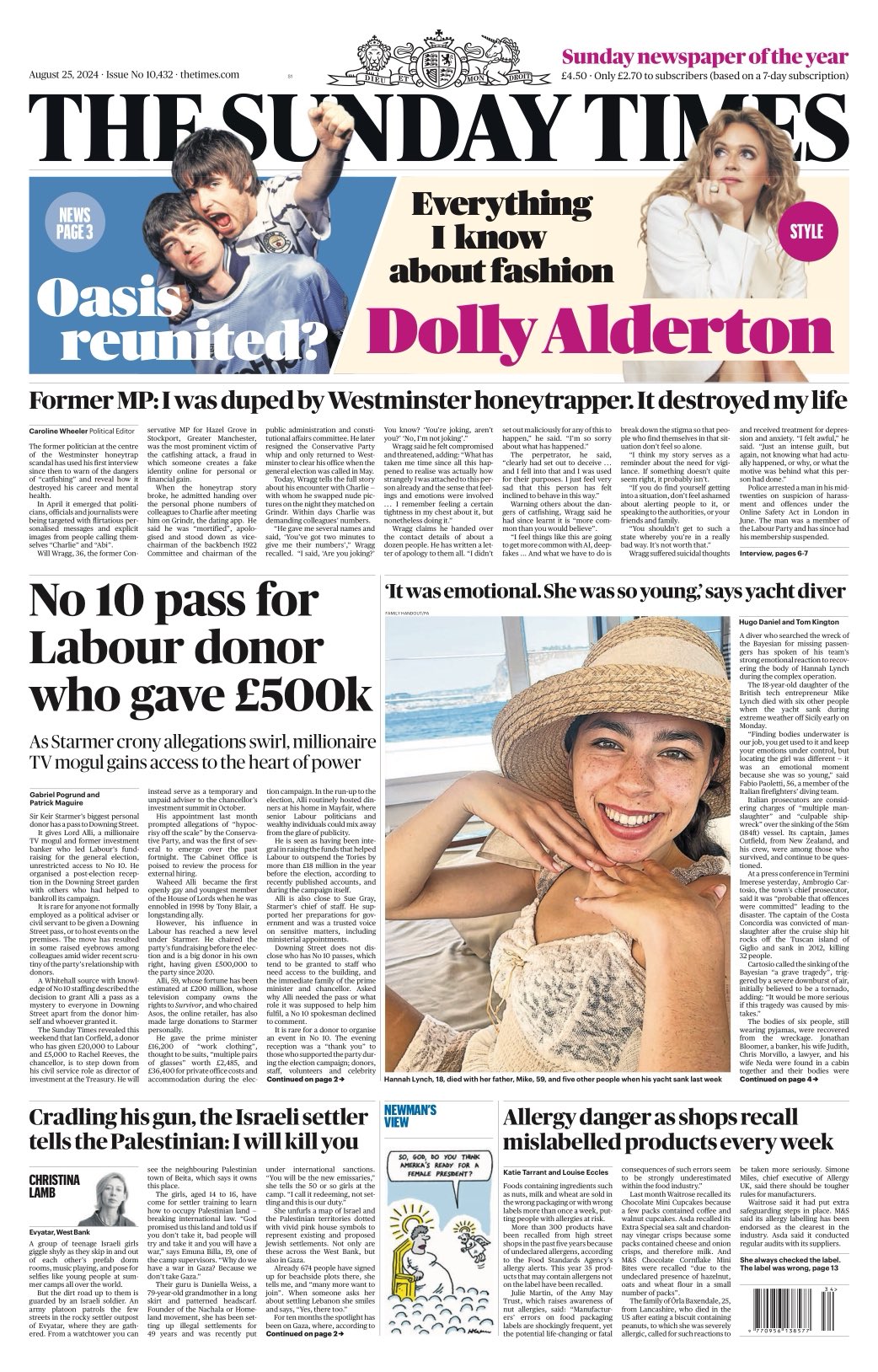 Sunday Telegraph Front Page 25th of August 2024