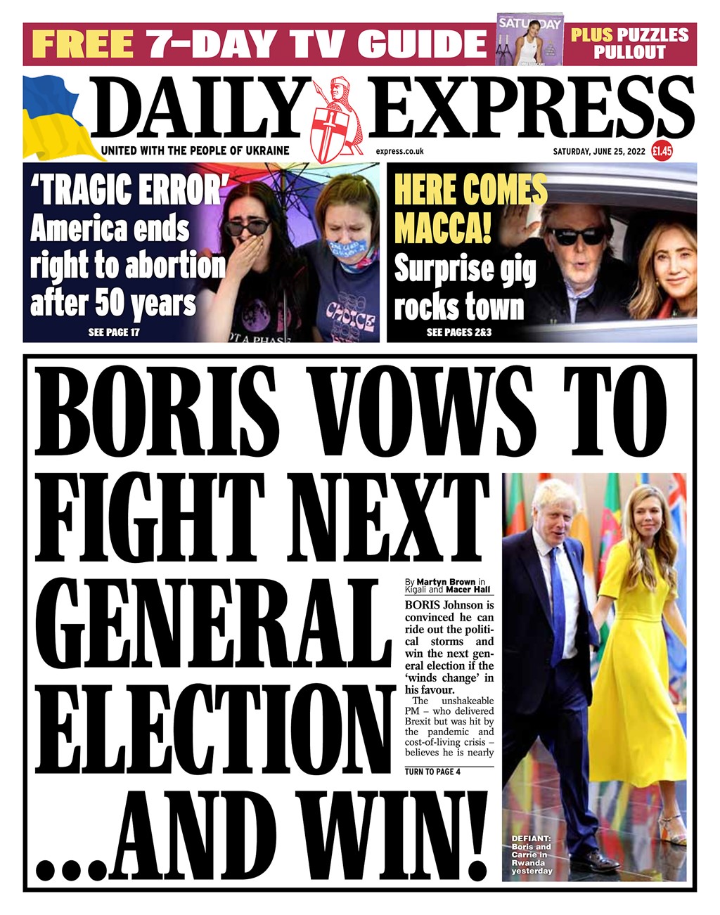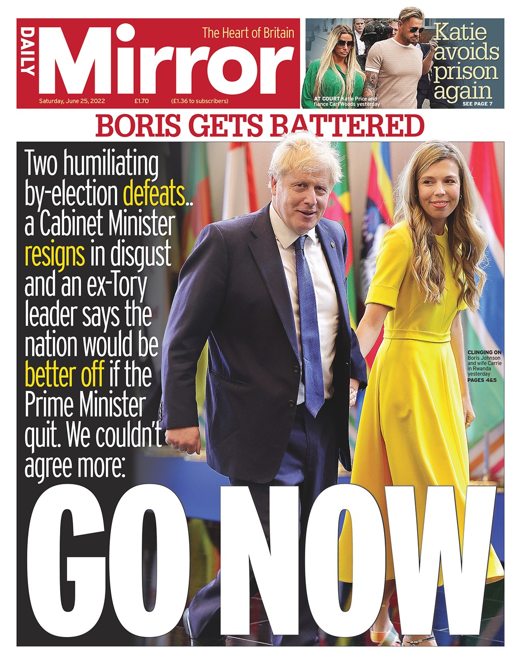 Prime Minister Boris Johnson needs to go, says the Daily Mirror.