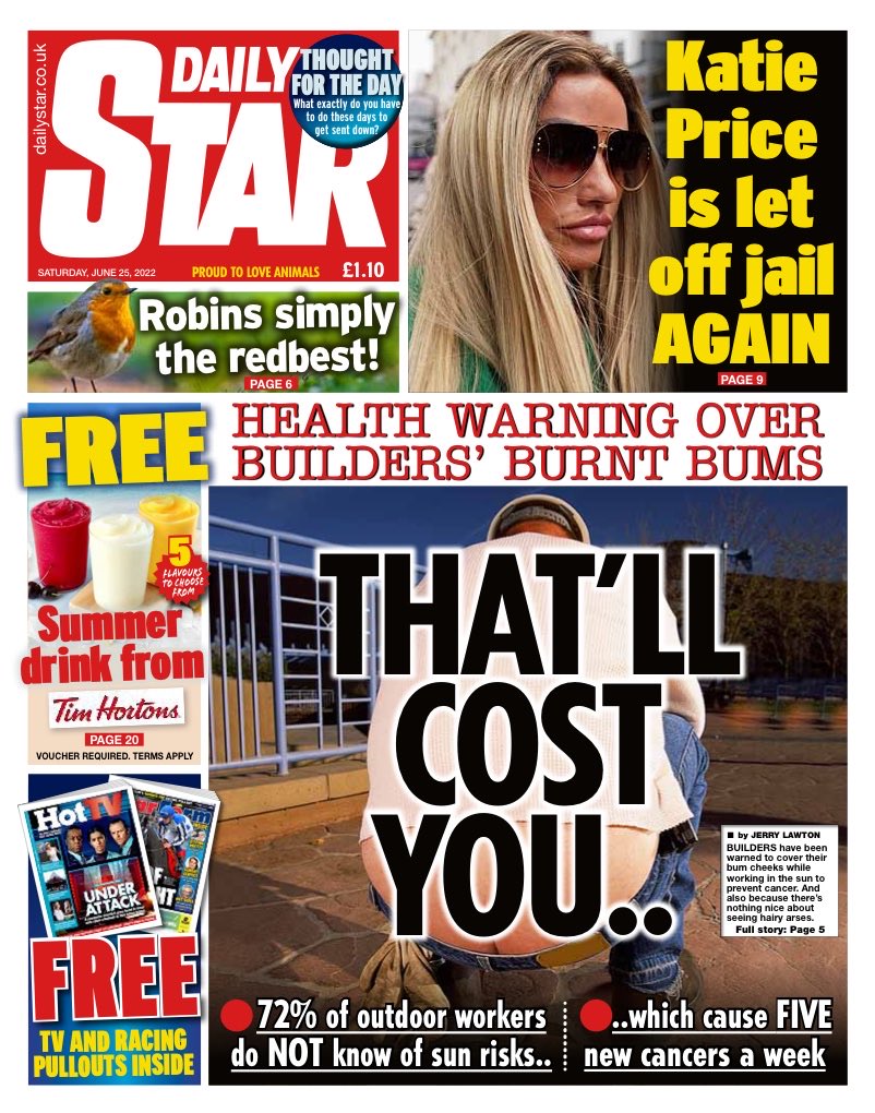 The Daily Star reports that builders are being advised to cover up in the sun to prevent skin cancer.
