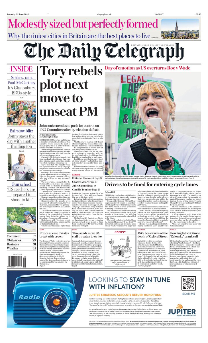 Boris Johnson faces a new challenge to his leadership, according to the Daily Telegraph.