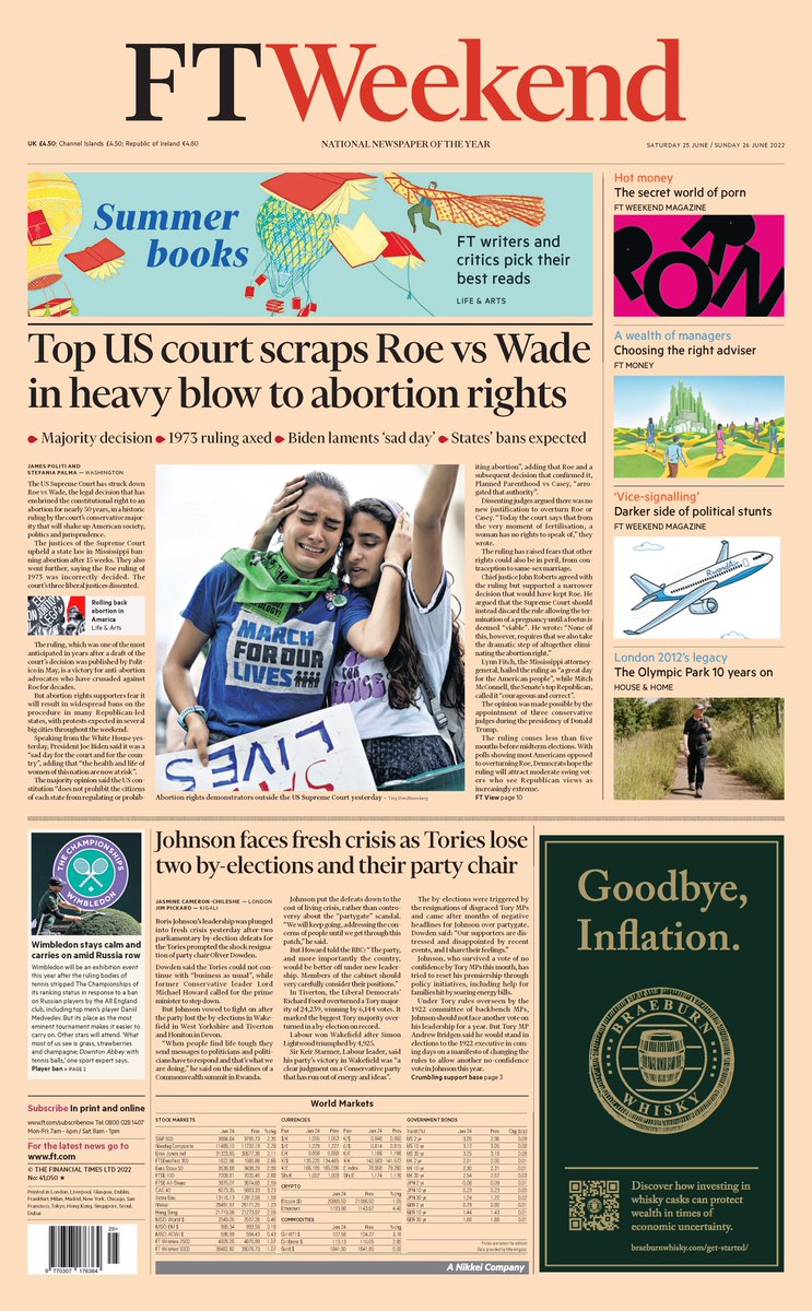 The Financial Times reports on the US Supreme Court’s ruling on abortion rights.