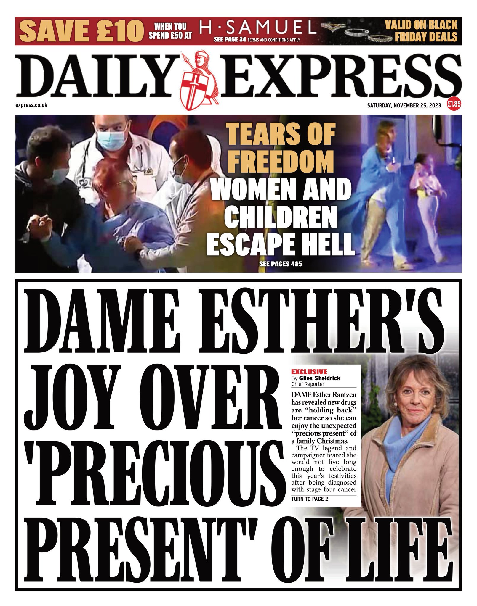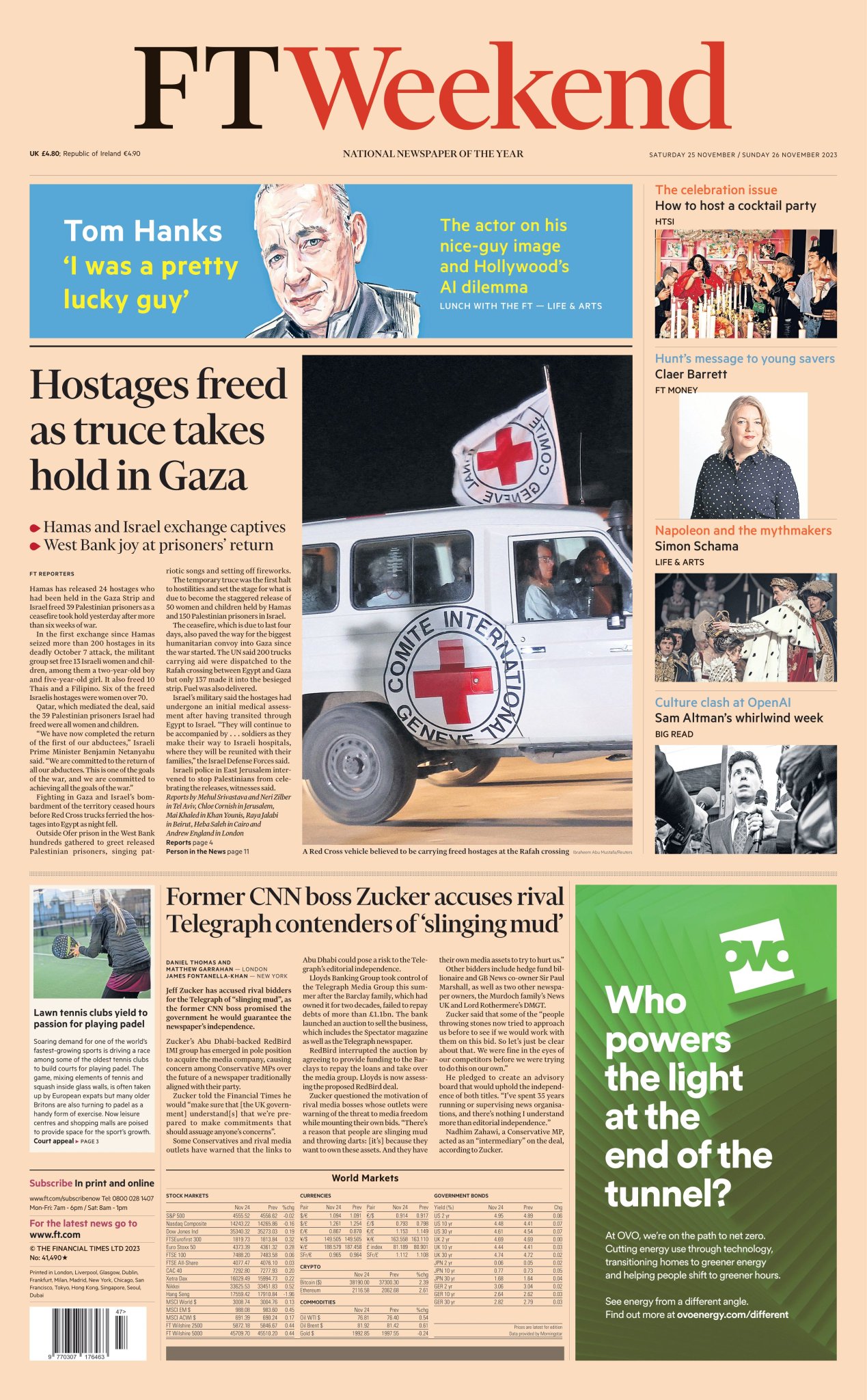 The Times reports on the liberation of 24 Israeli captives by Hamas, under the headline “At last, freedom for some”.