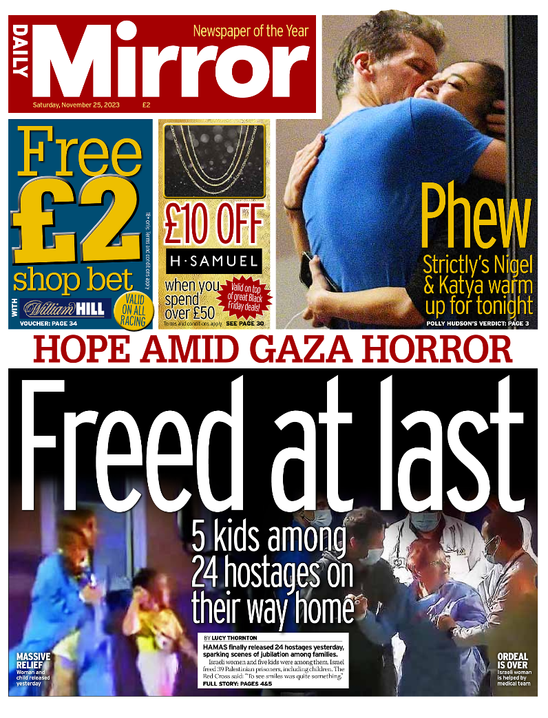 The Daily Mirror reports on the liberation of 24 Israeli captives by Hamas.