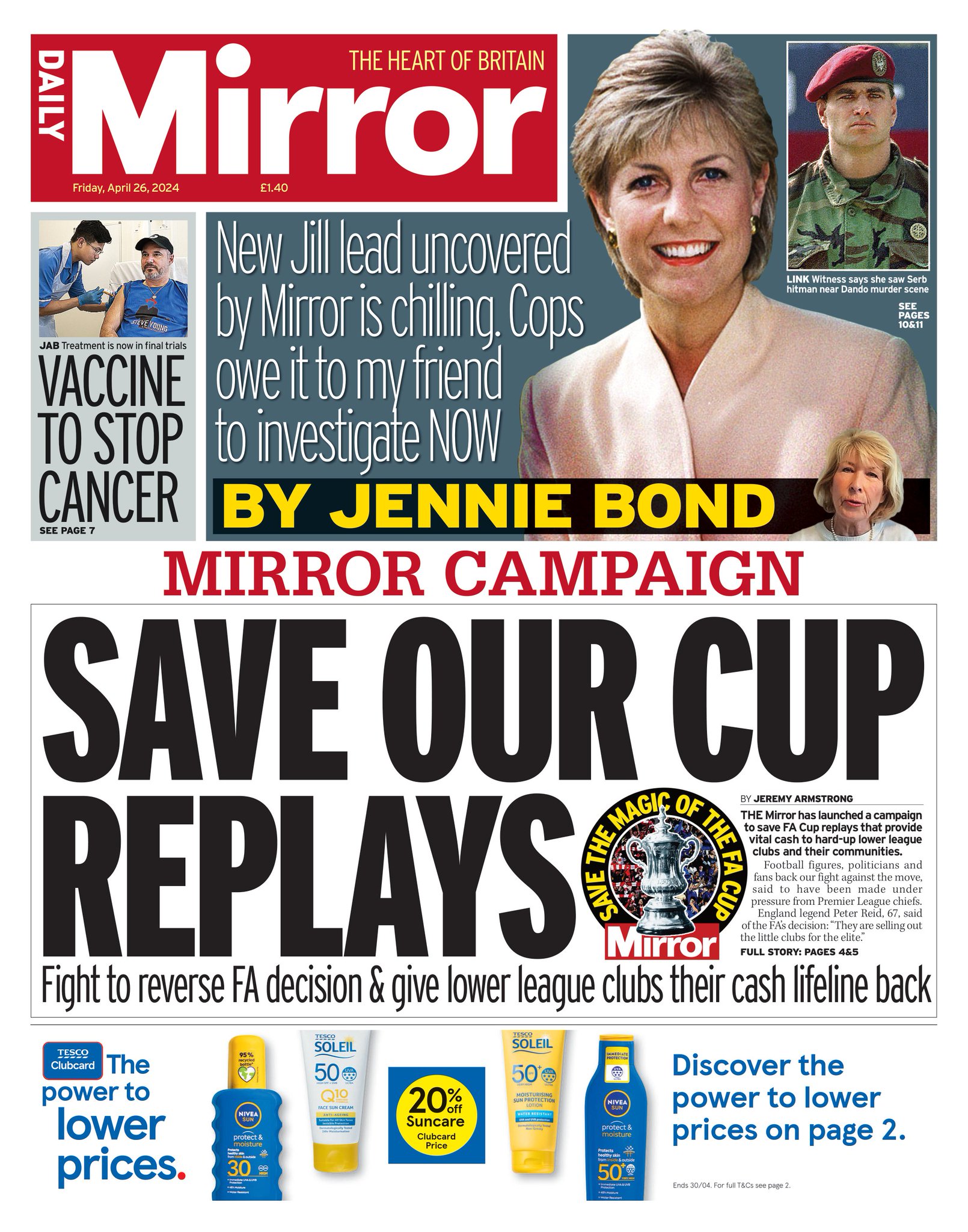 The Daily Mirror initiates a campaign to preserve FA Cup replays, following their announced abolition from the next season.
