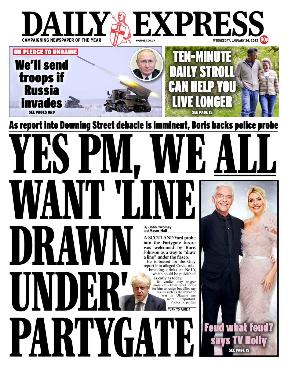 Daily Mirror Front Page 26th of January 2022