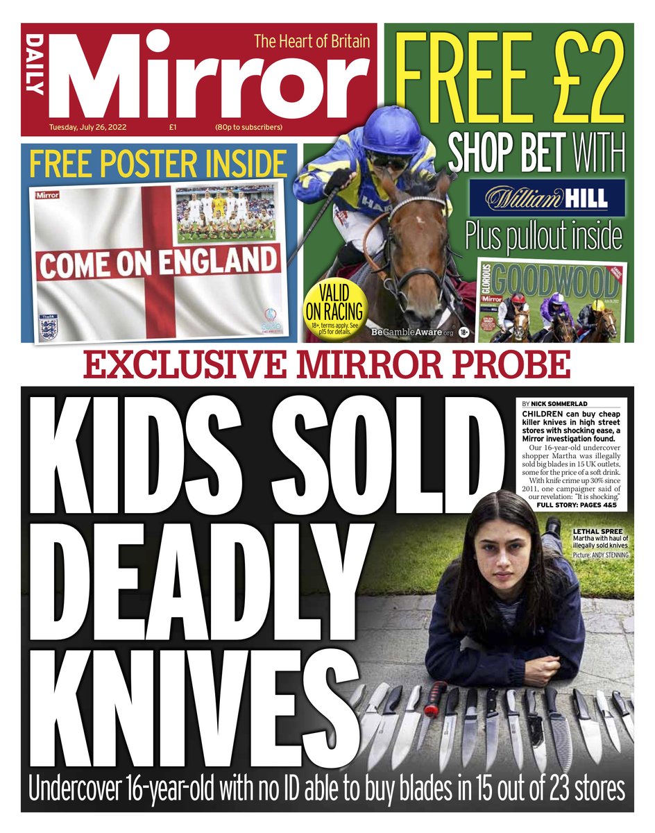 According to the Daily Mirror, children are easily able to obtain lethal knives from high street stores.