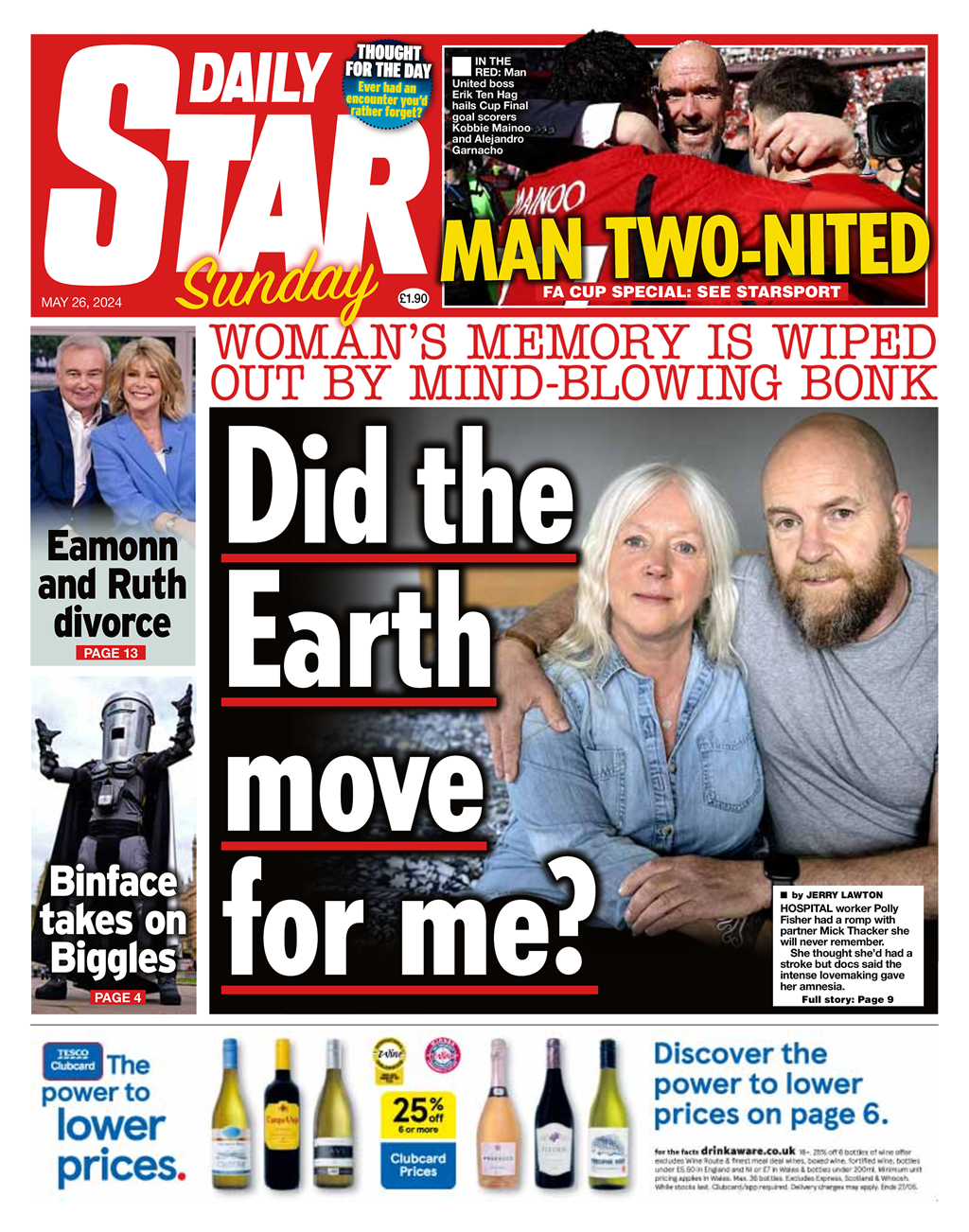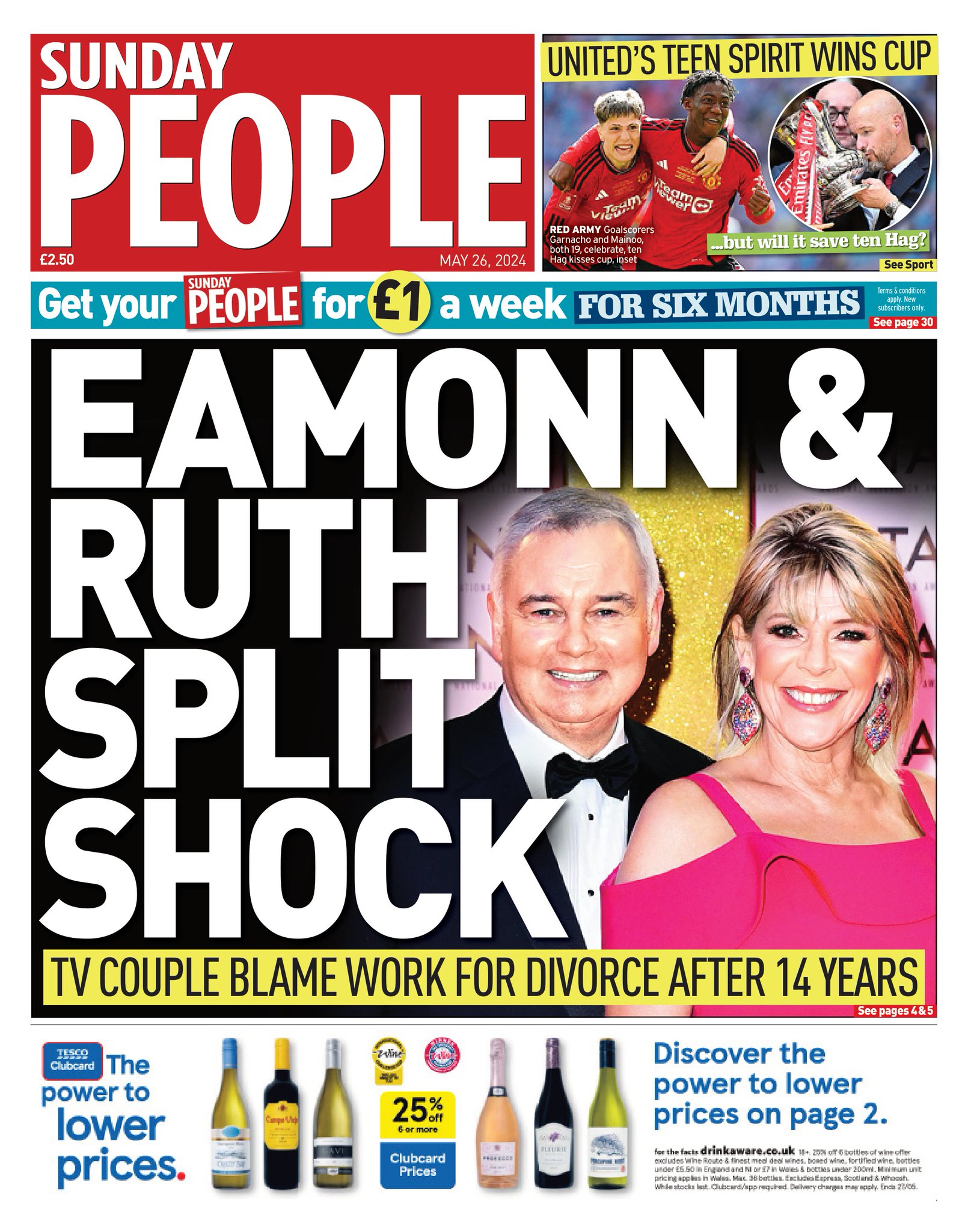 The Sunday Mirror reports on the impending divorce of TV hosts Ruth Langsford and Eamonn Holmes after 14 years.