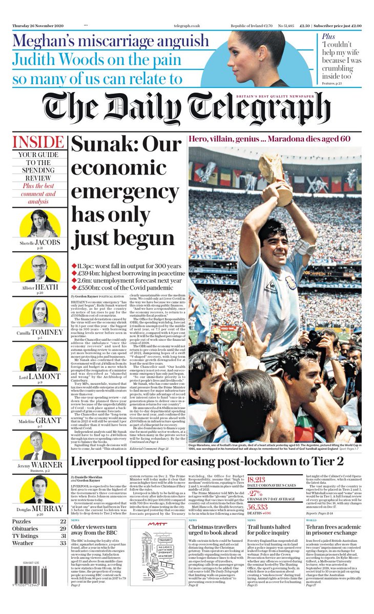 Chancellor Rishi Sunak says Britain’s economic emergency has only just begun – that’s on the front of The Daily Telegraph.