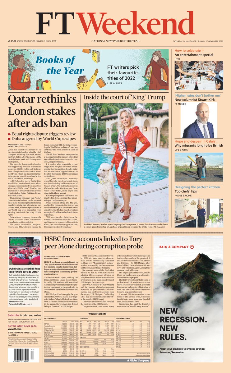 FT Weekend reports that Qatar is rethinking its investment in London after Transport for London banned its ads on buses, taxis, and the Tube.