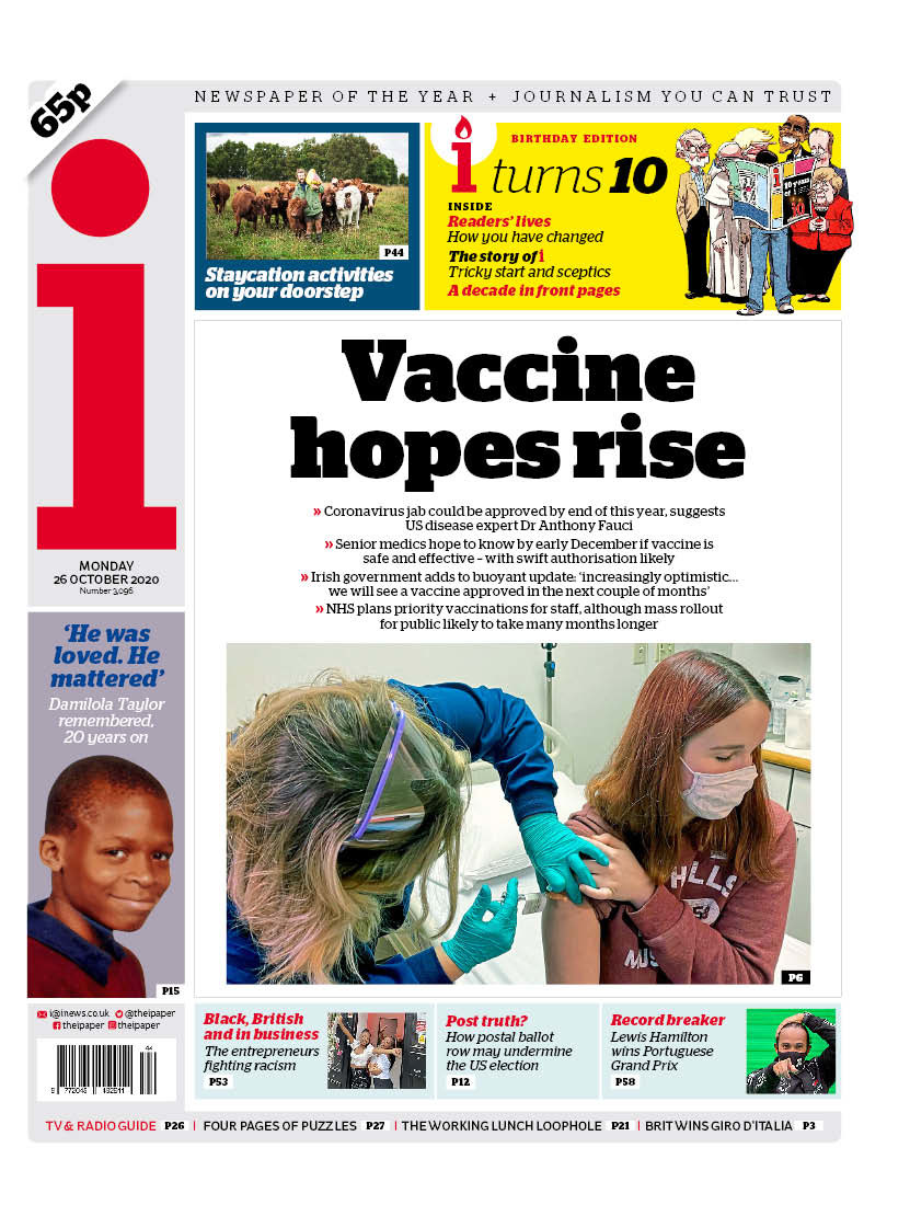 The i reports that a coronavirus vaccine could be approved by the end of the year, according to the US government’s top adviser, Dr Anthony Fauci.