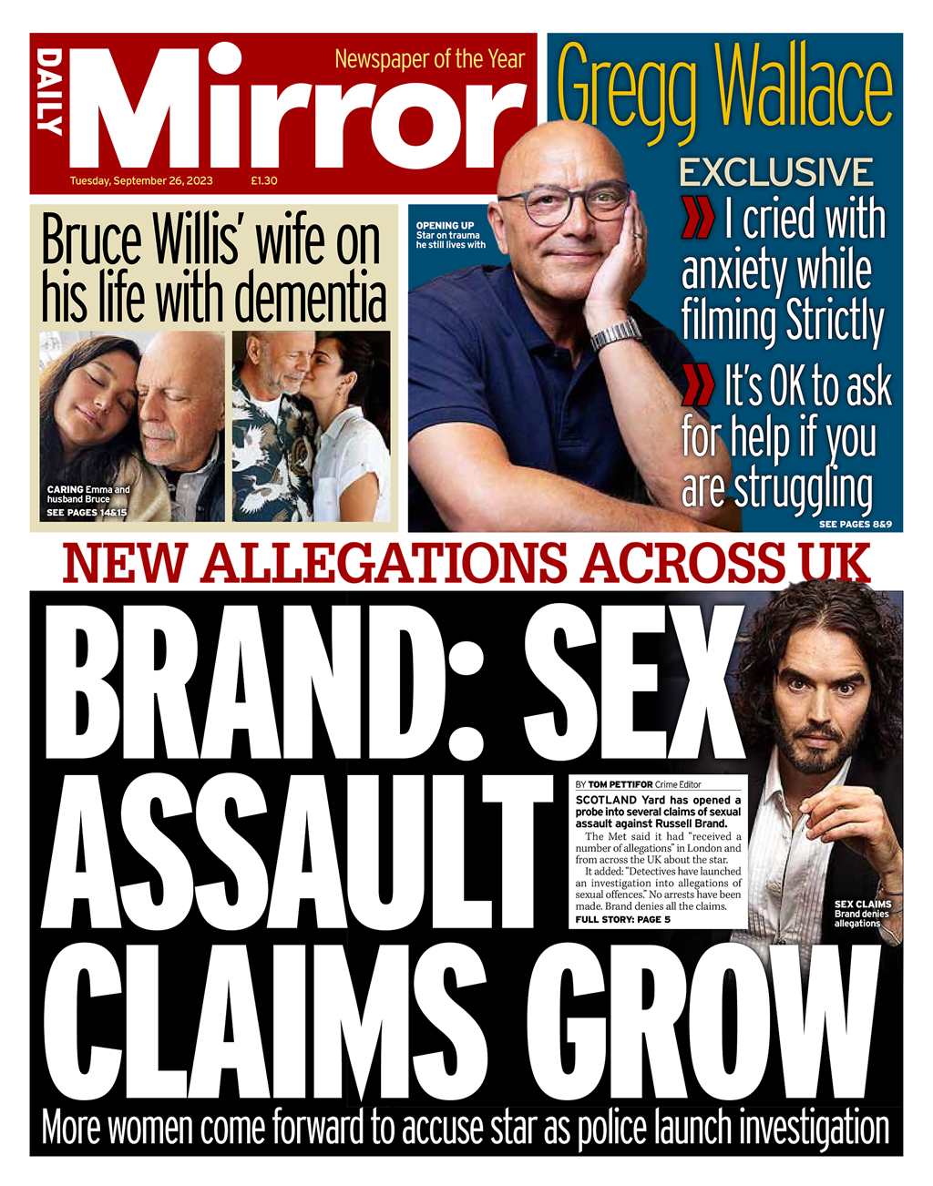 The Daily Mirror reveals that the Metropolitan Police are investigating multiple sexual assault allegations against Russell Brand.