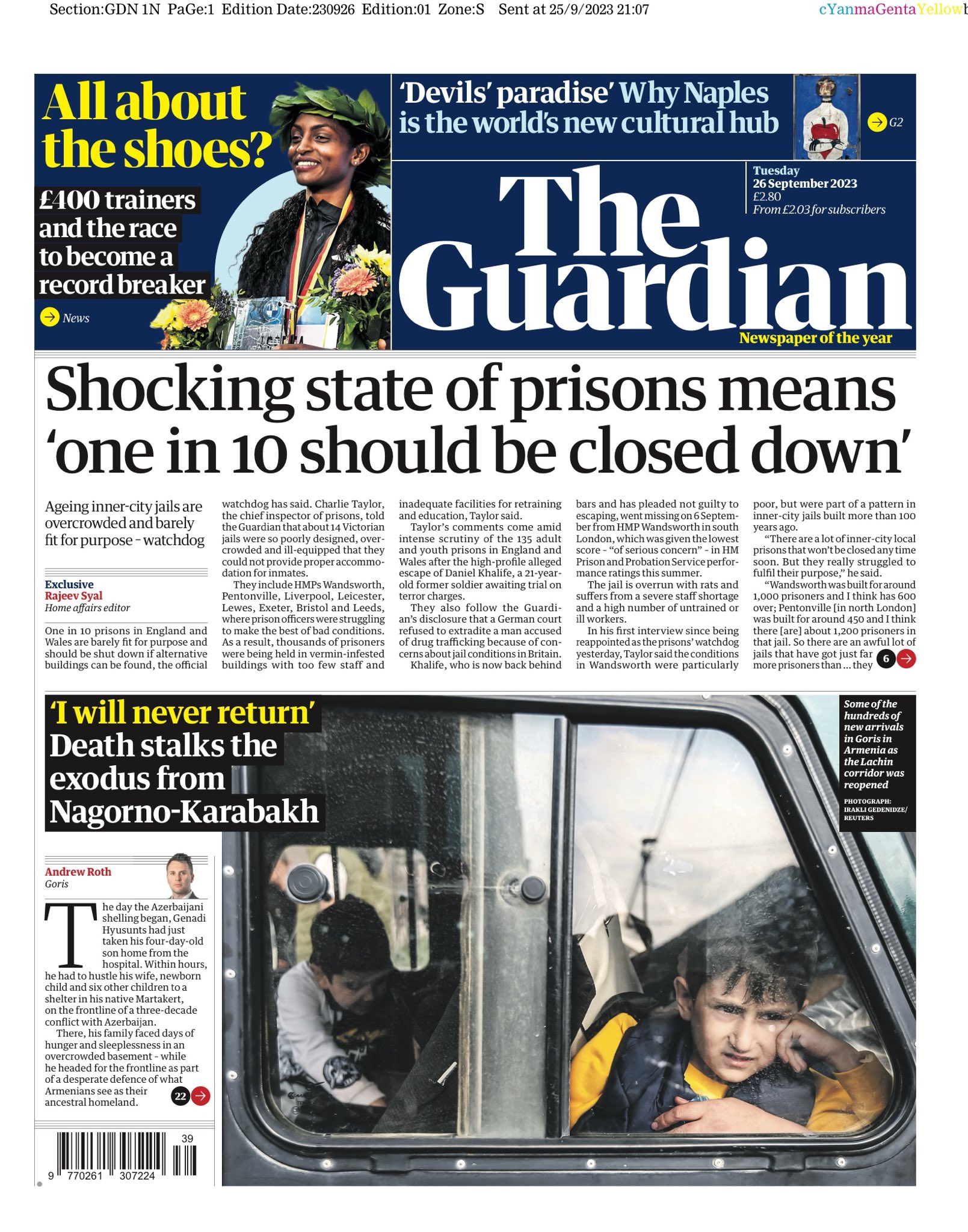 The Guardian reveals that 10% of prisons in England and Wales are unfit for use and need replacement.