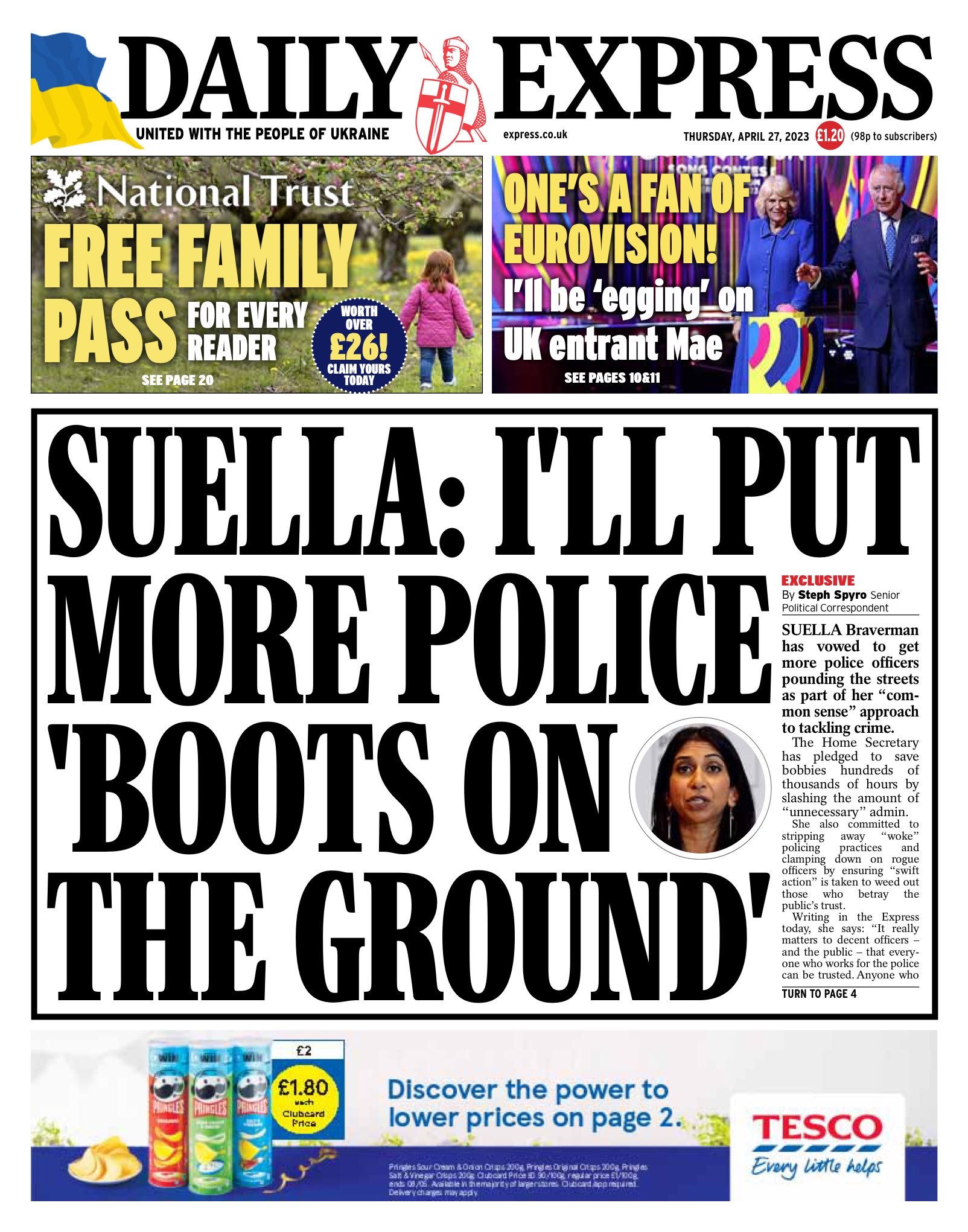 The Daily Express shares Home Secretary Suella Braverman’s plan to deploy more police officers on streets.