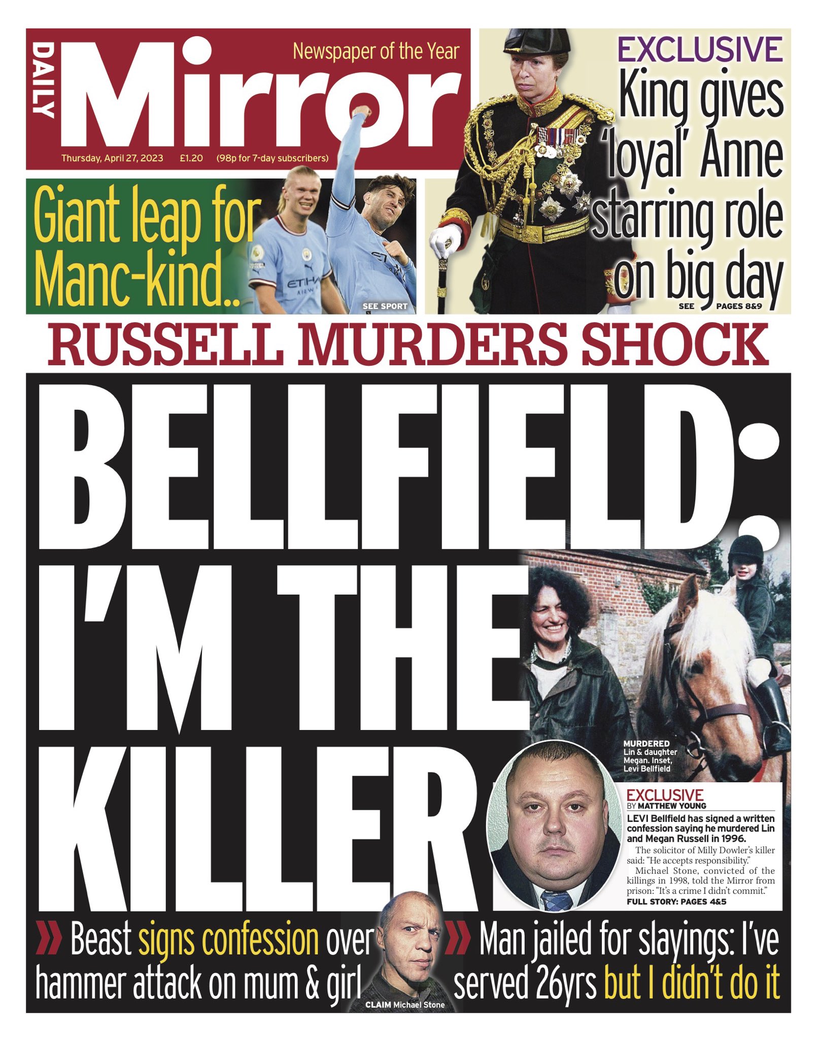 The Daily Mirror reports that Levi Bellfield has signed a written confession admitting to the 1996 murders of Lin and Megan Russell.