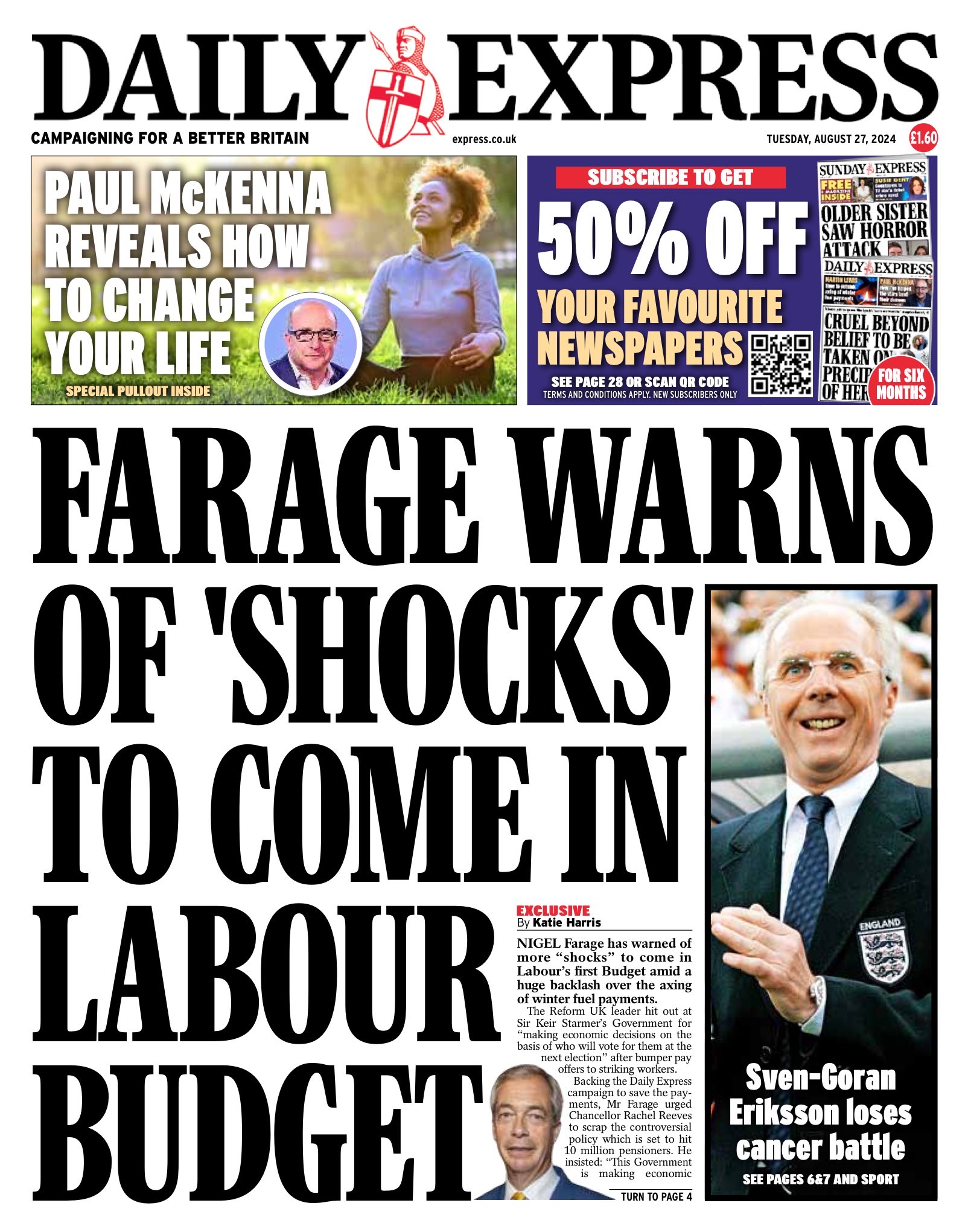 Nigel Farage has warned of significant surprises in Labour’s forthcoming Budget, expressing concerns about the potential backlash from decisions such as the elimination of winter fuel payments.