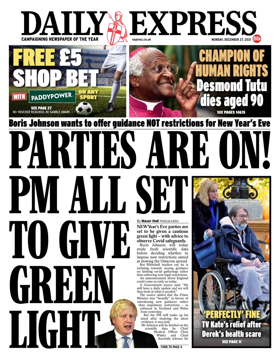 Prime Minister Boris Johnson is due to study new scientific data on Monday before deciding whether to impose new COVID restrictions, according to the Daily Express.