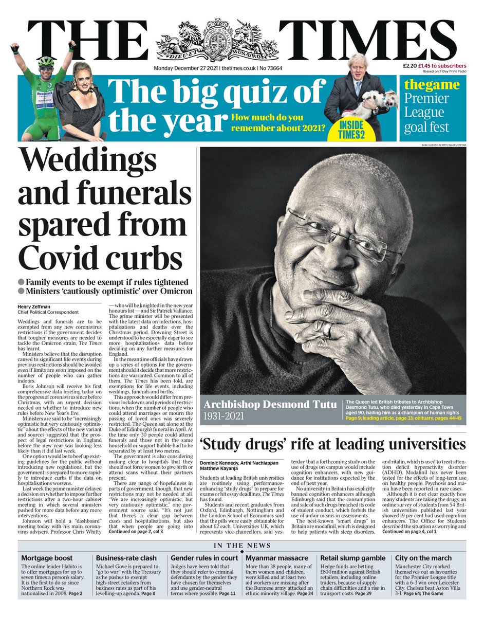 Weddings and funerals are to be exempted from any new COVID restrictions if the government decides that tougher measures are needed, writes The Times.