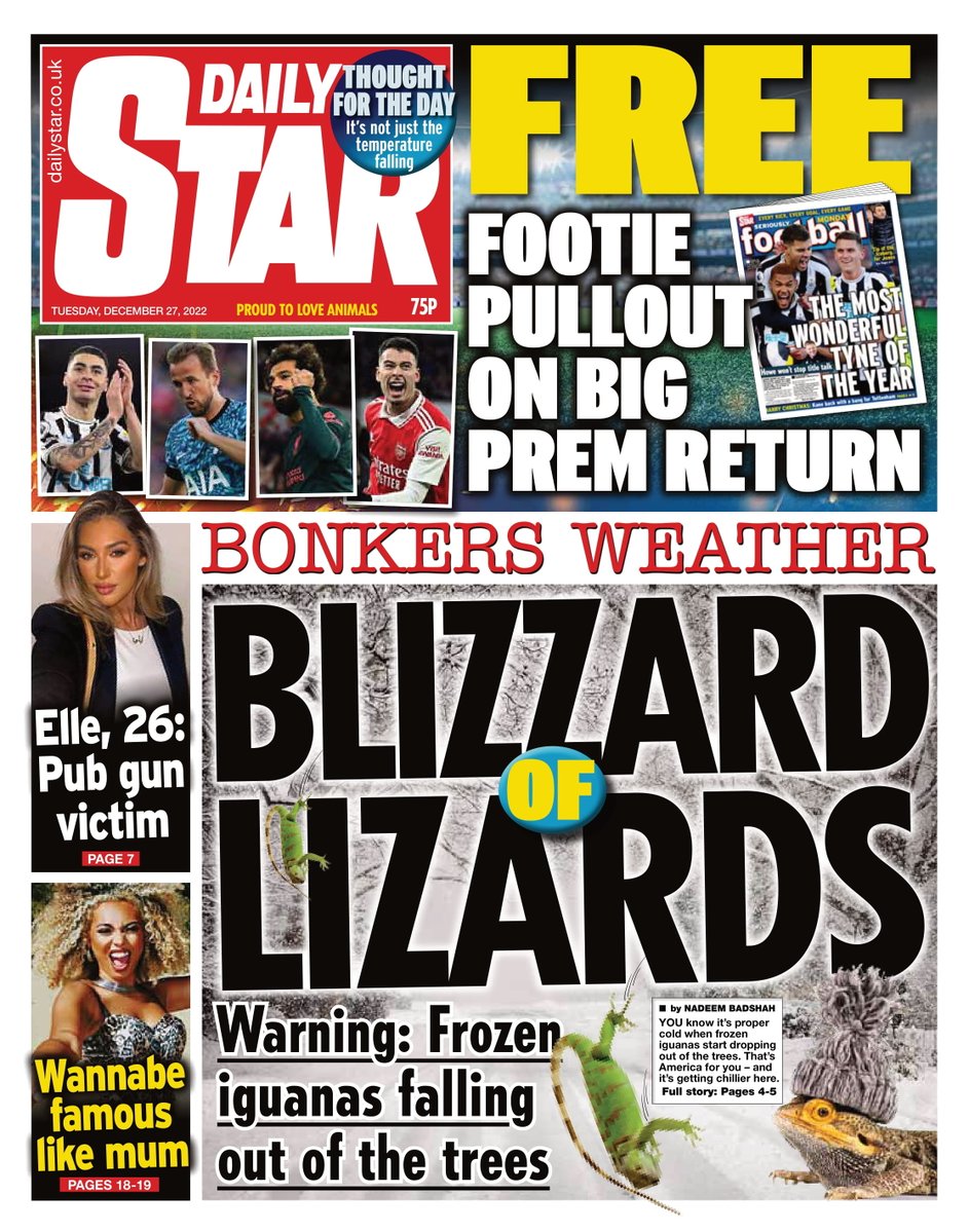 The Daily Star reports that iguanas are falling from trees in the US as a result of the extreme winter weather.