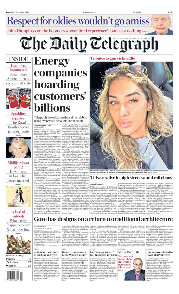 The Daily Telegraph reports that energy companies are hoarding customers’ money by raising direct debits even if a customer’s account is in credit.