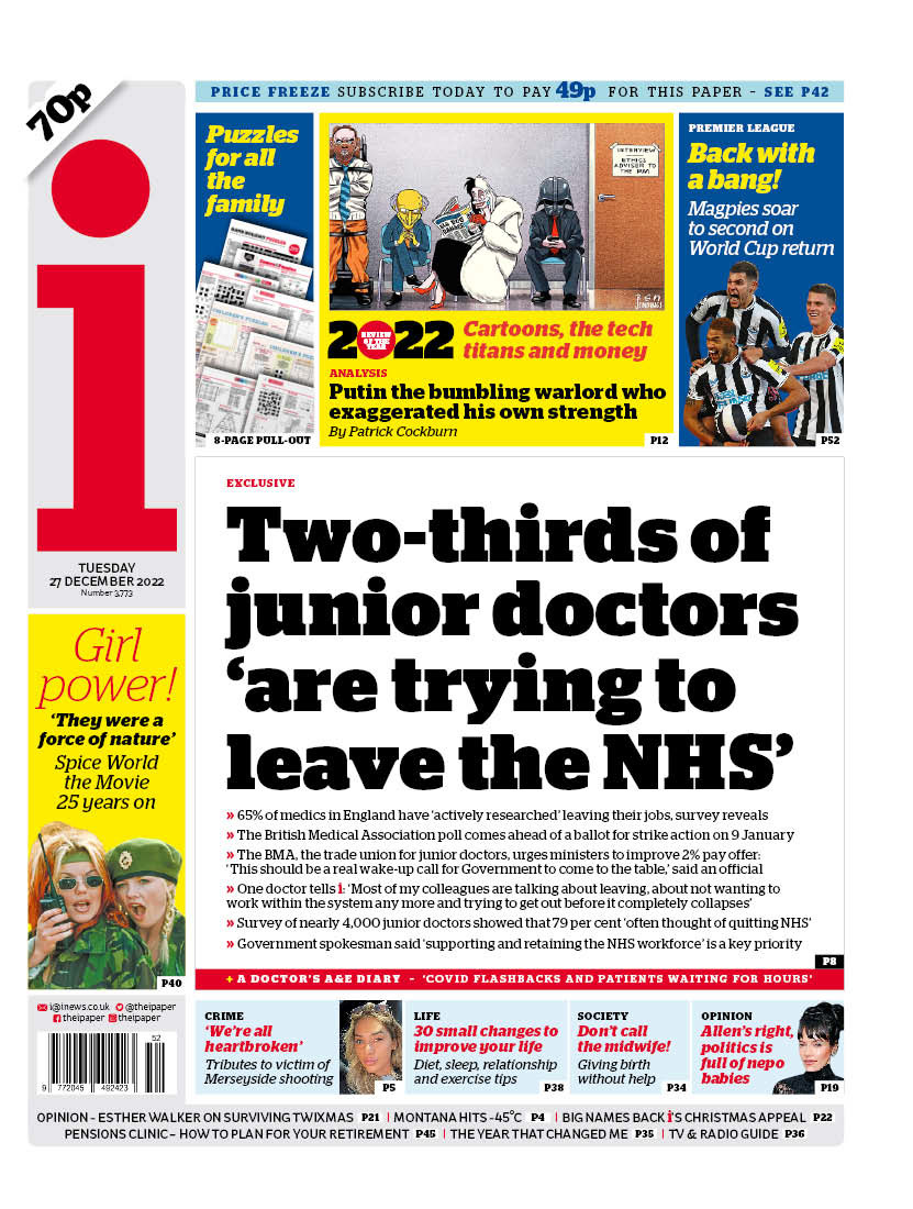 The i reported that two-thirds of junior doctors are considering leaving the NHS.