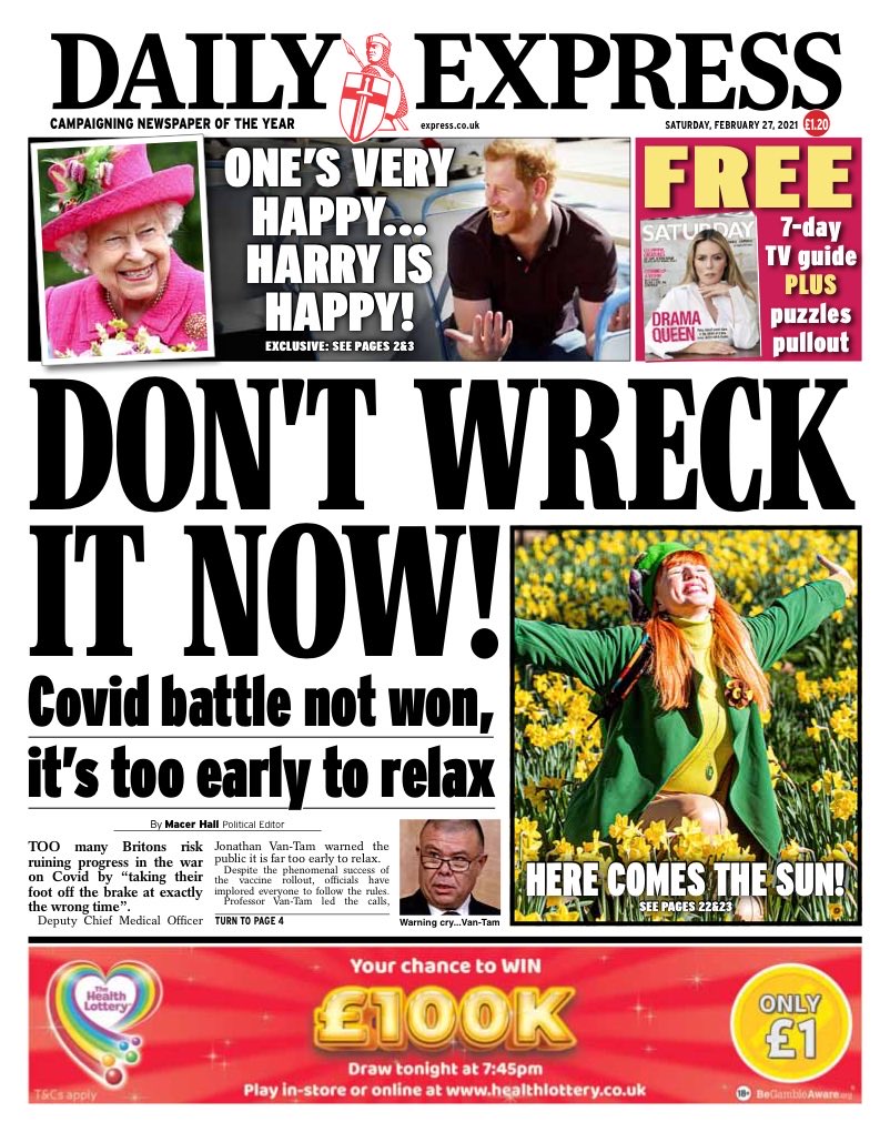 England’s deputy chief medical officer has warned too many Britons risk ruining progress in the war on COVID by “taking their foot off the brake at exactly the wrong time”, the Daily Express writes.Jonathan Van-Tam’s warning is also our lead story.